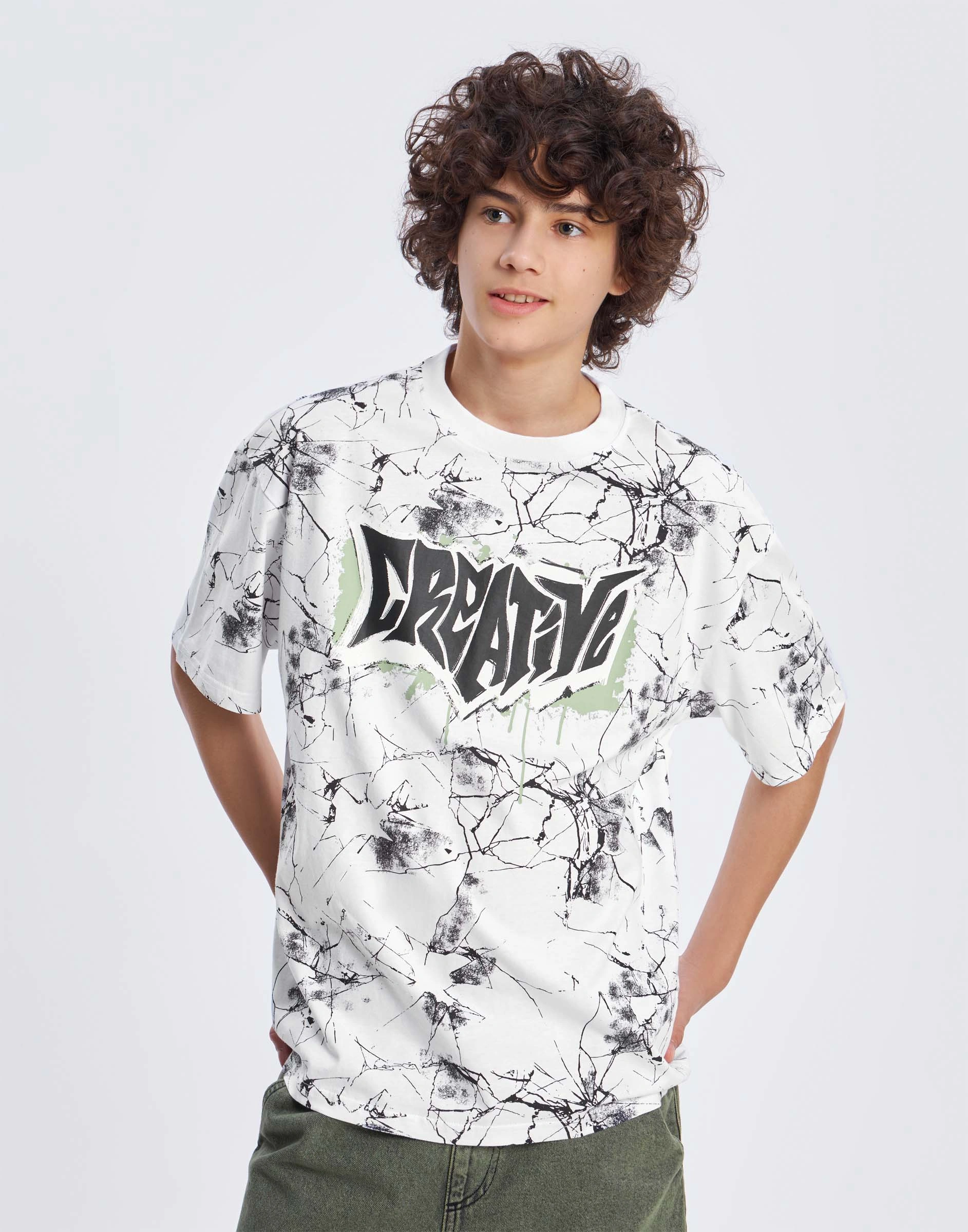 Белая футболка oversize с принтом Bkt016248-2