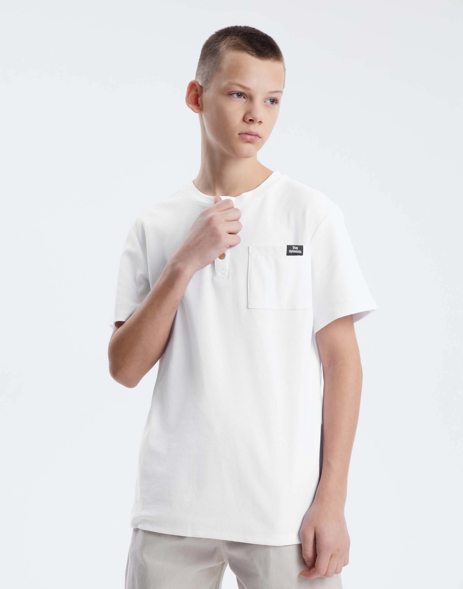 Белая футболка с планкой на пуговицах и карманом Bkt016287-2