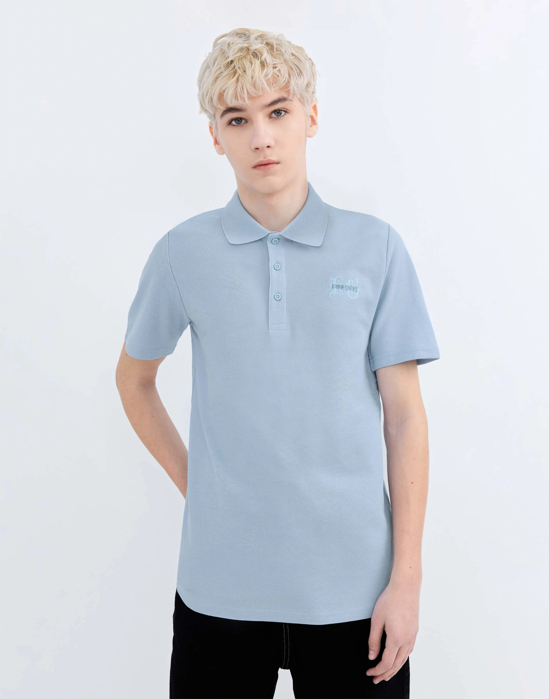 Голубая свободная футболка-поло с вышивкой Bkt016175-3