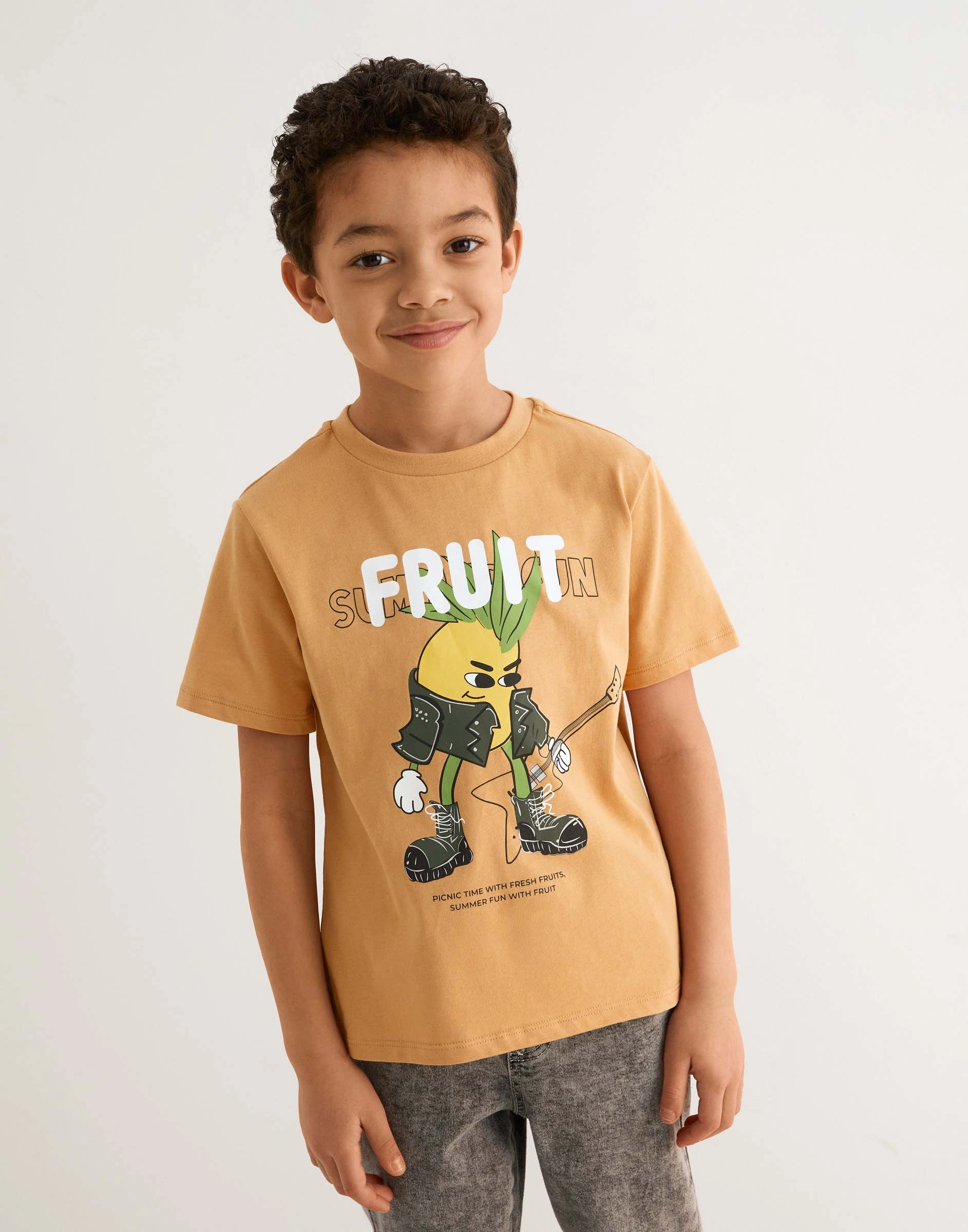 Горчичная футболка с принтом для мальчика Bkt016718-1