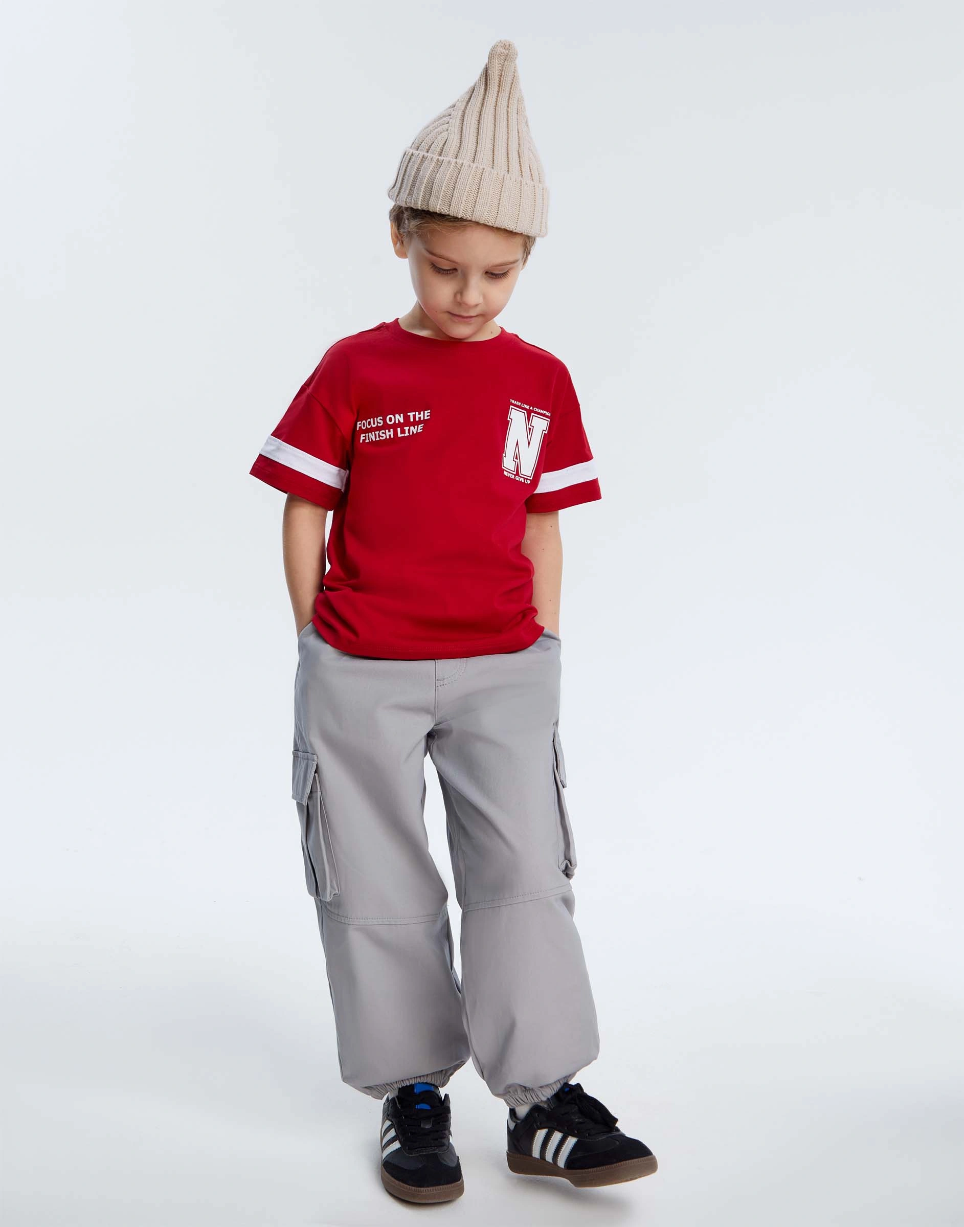 Красная футболка oversize с принтом для мальчика Bkt016246-1