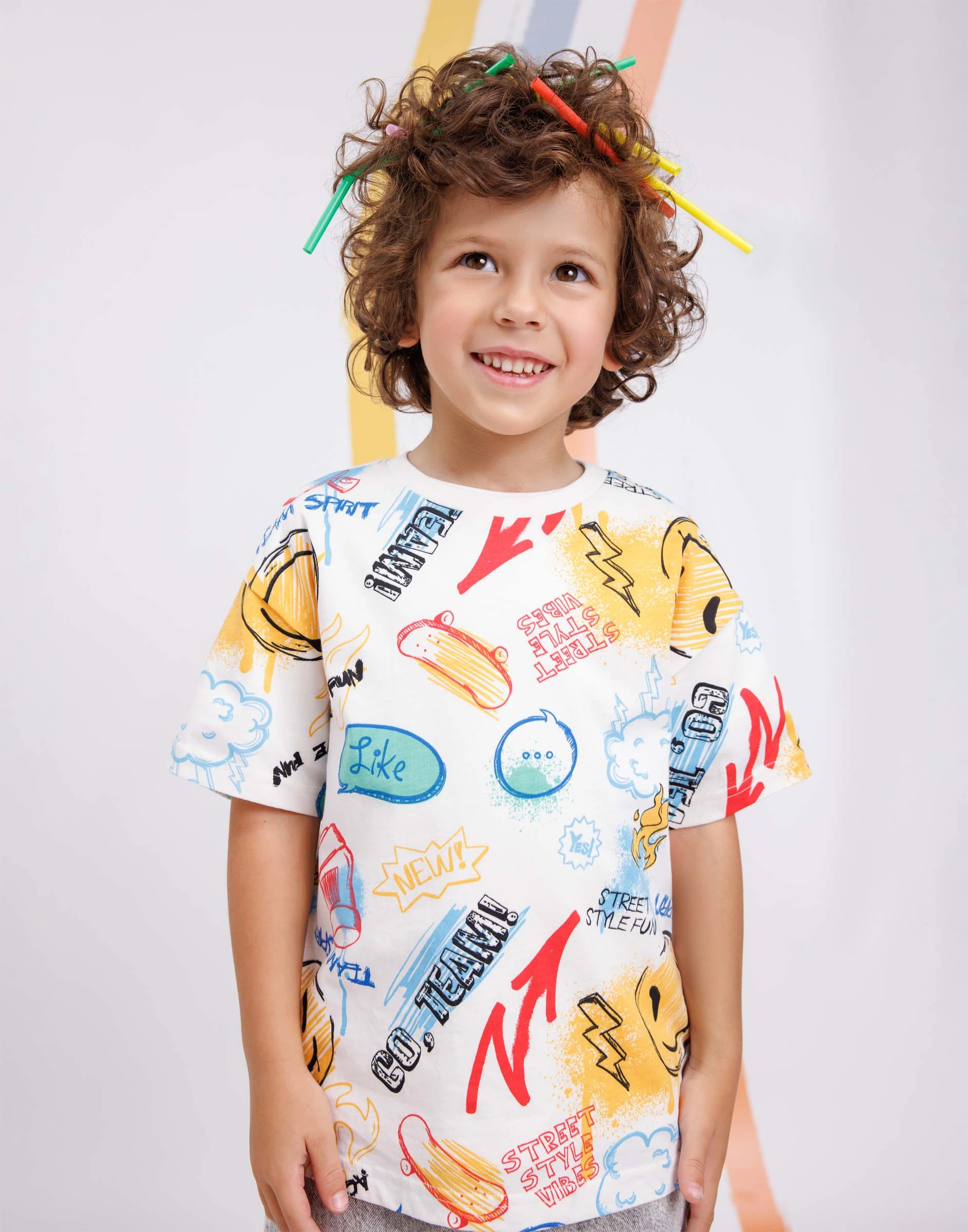 Молочная футболка oversize с принтом для мальчика Bkt016245-2