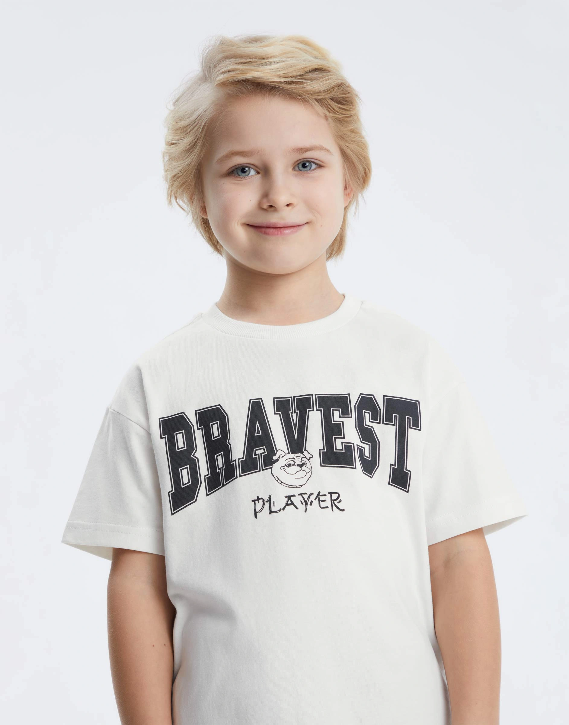 Молочная футболка oversize с принтом для мальчика Bkt016450-1