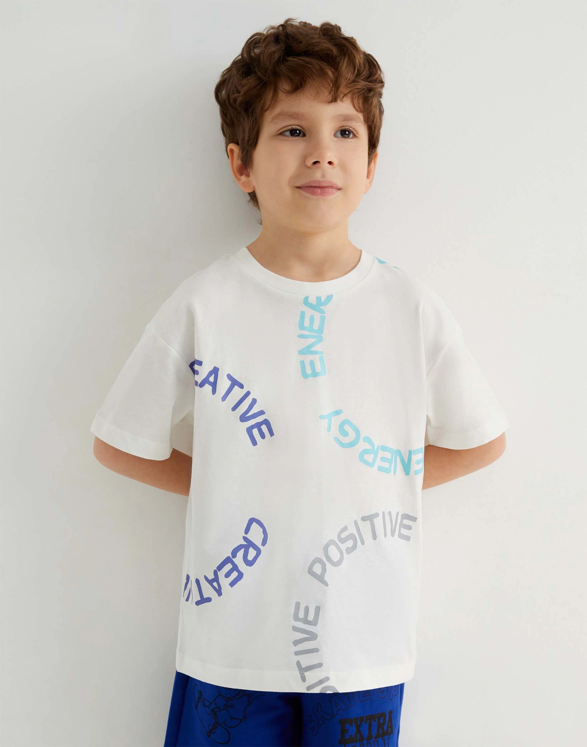 Молочная футболка oversize с принтом для мальчика Bkt016715-2