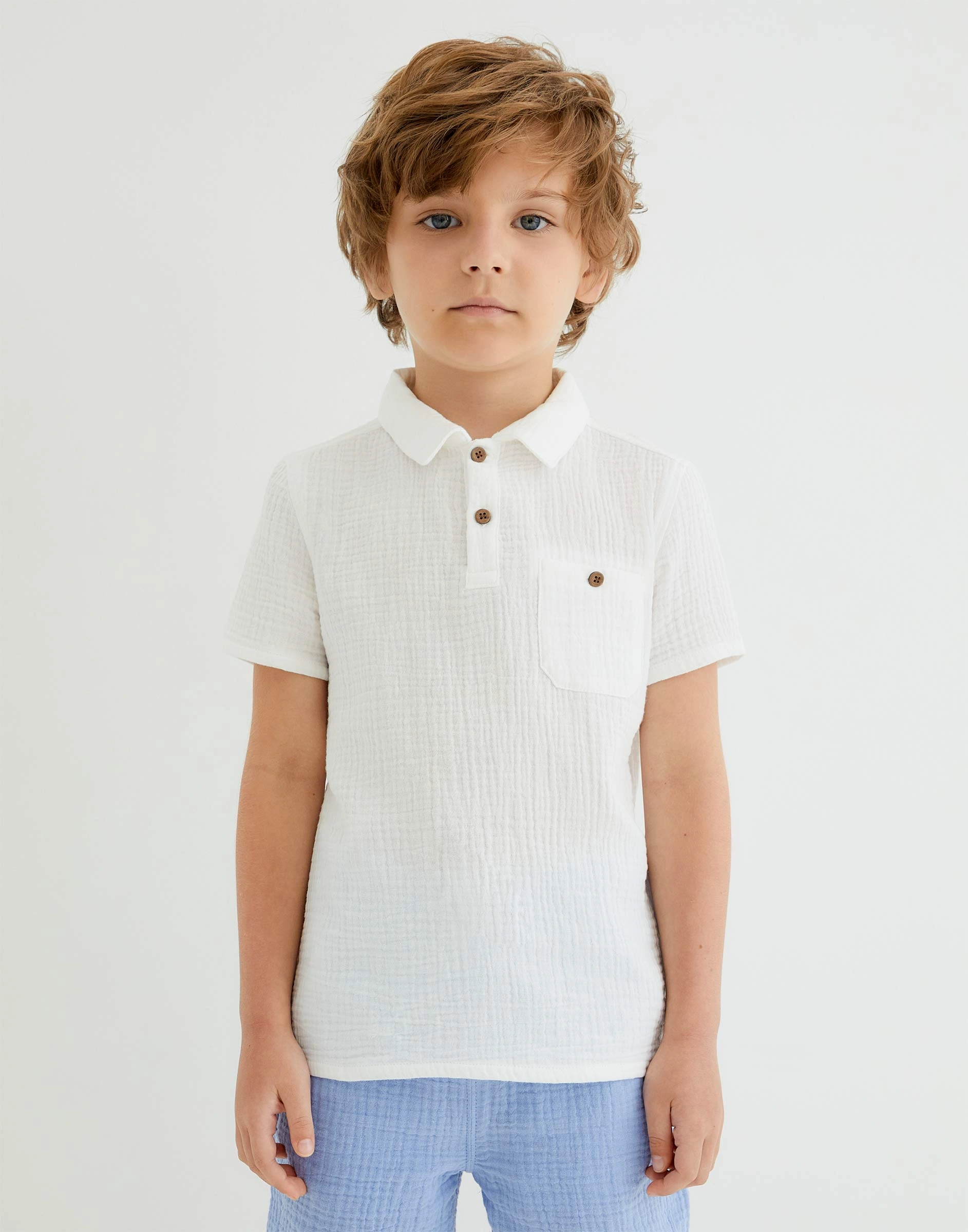 Молочная футболка поло из муслина с нагрудным карманом для мальчика Bkt016371-1