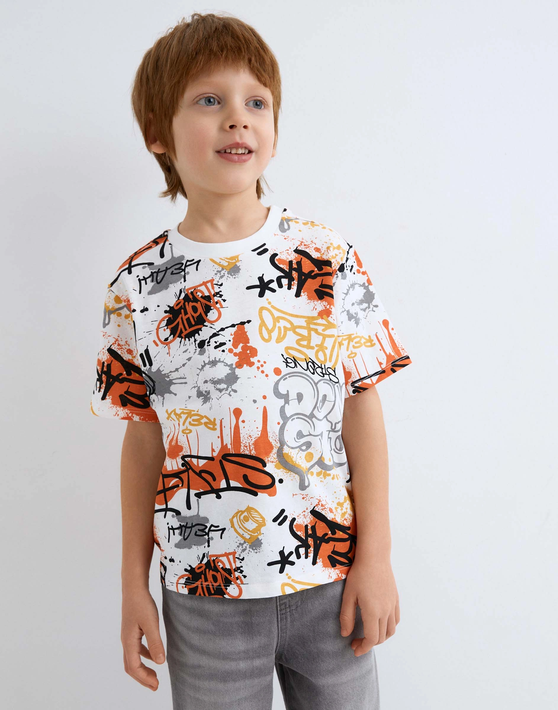 Молочная футболка с принтом для мальчика Bkt016874-1