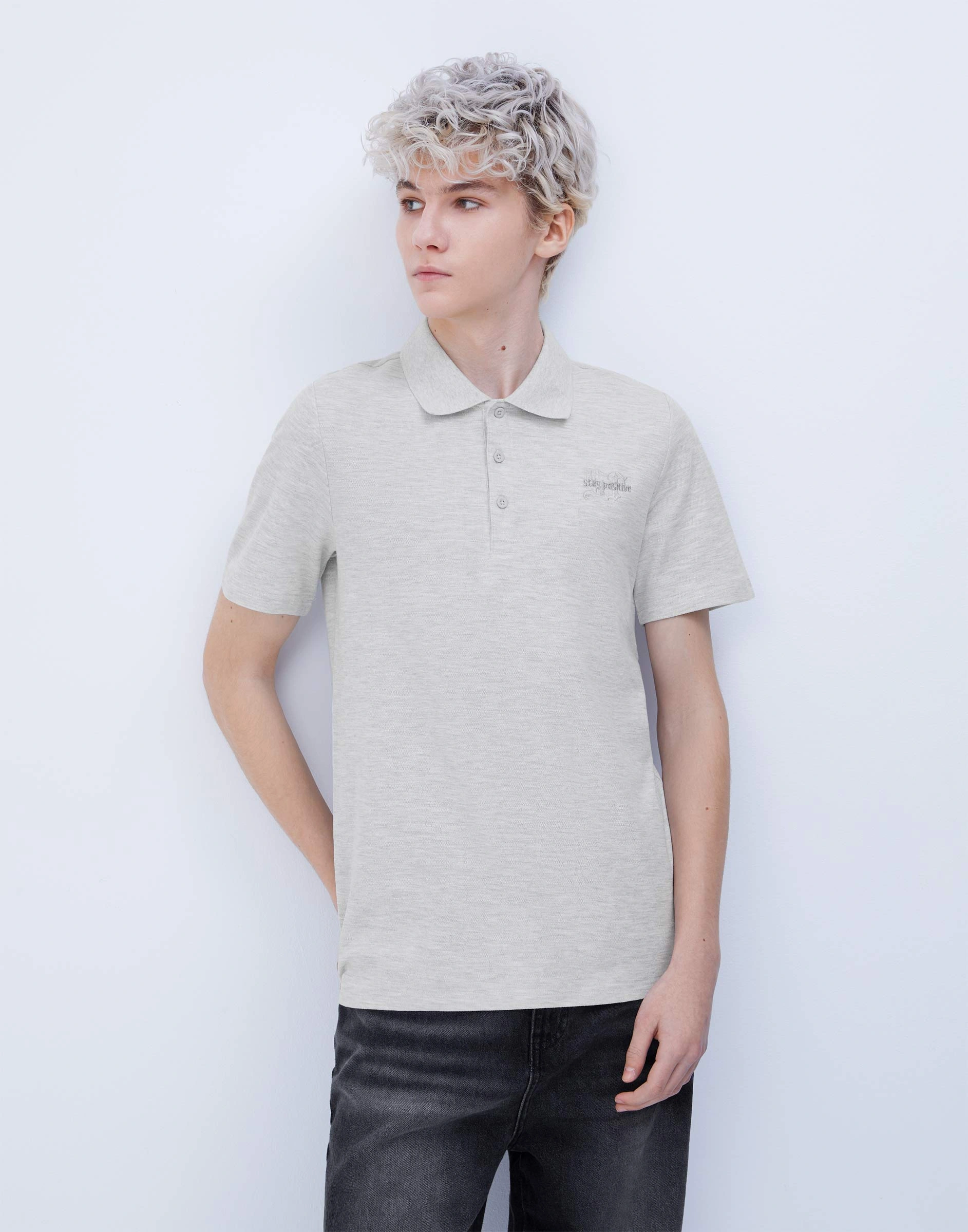 Серая свободная футболка-поло с вышивкой Bkt016175-4