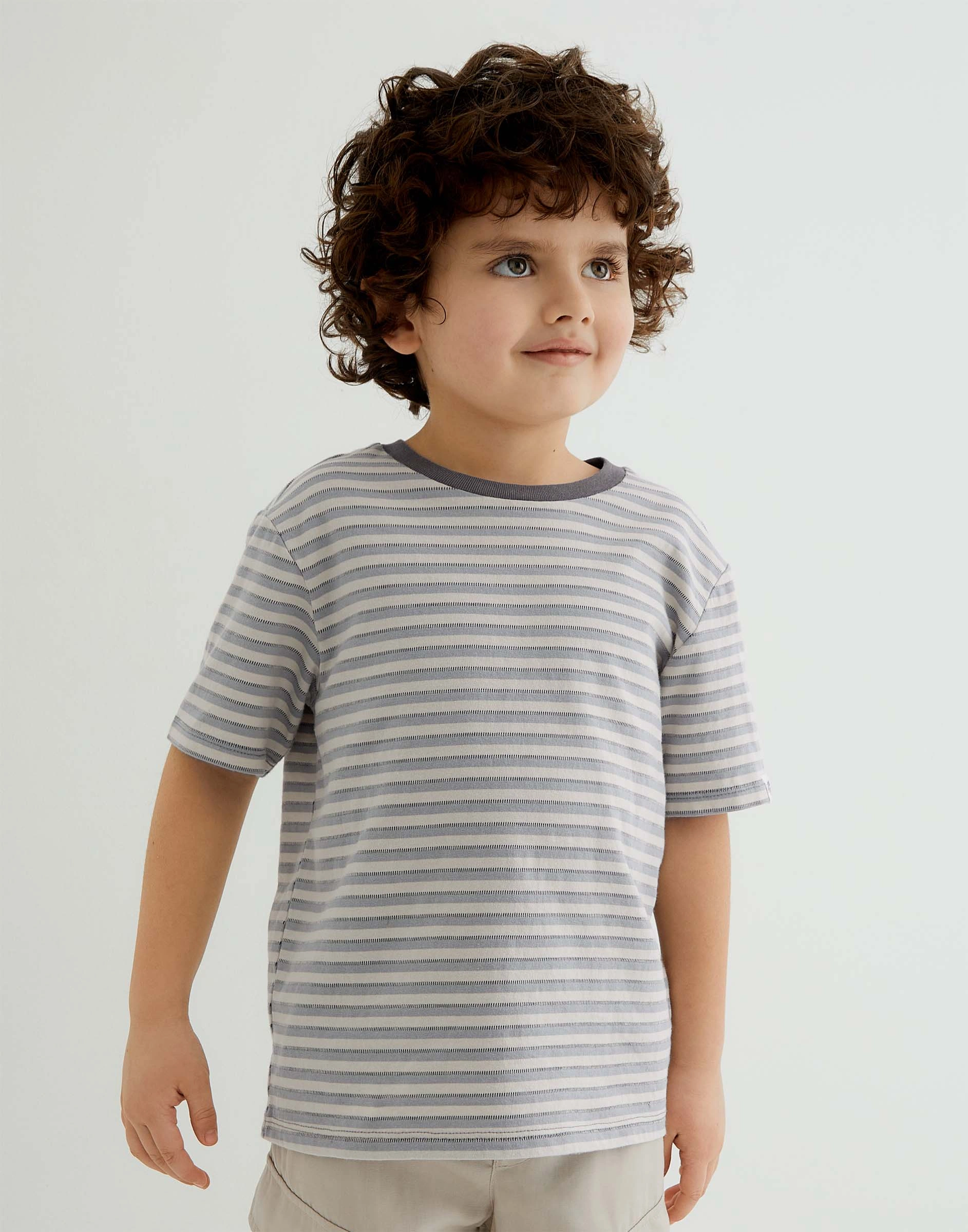Тёмно-серая футболка в полоску для мальчика Bkt016026-1