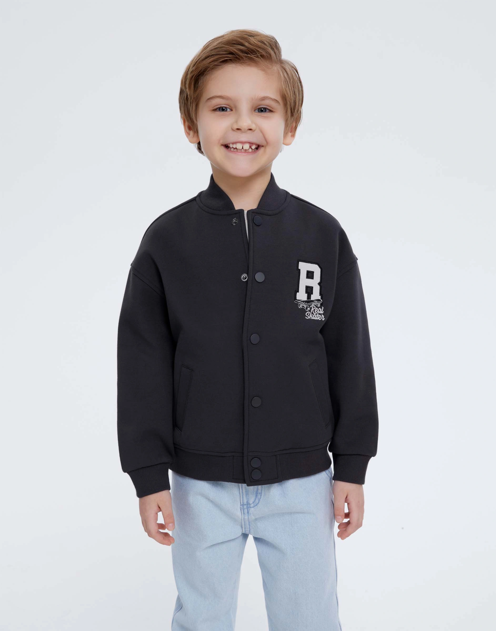 Тёмно-серый бомбер oversize c вышивкой для мальчика Bac013802-2