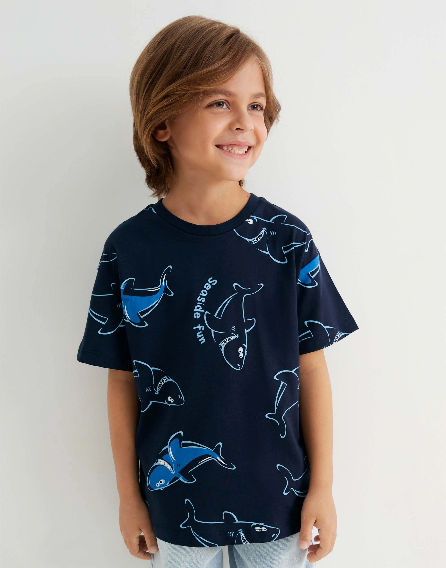 Тёмно-синяя футболка oversize с принтом для мальчика Bkt016702-2