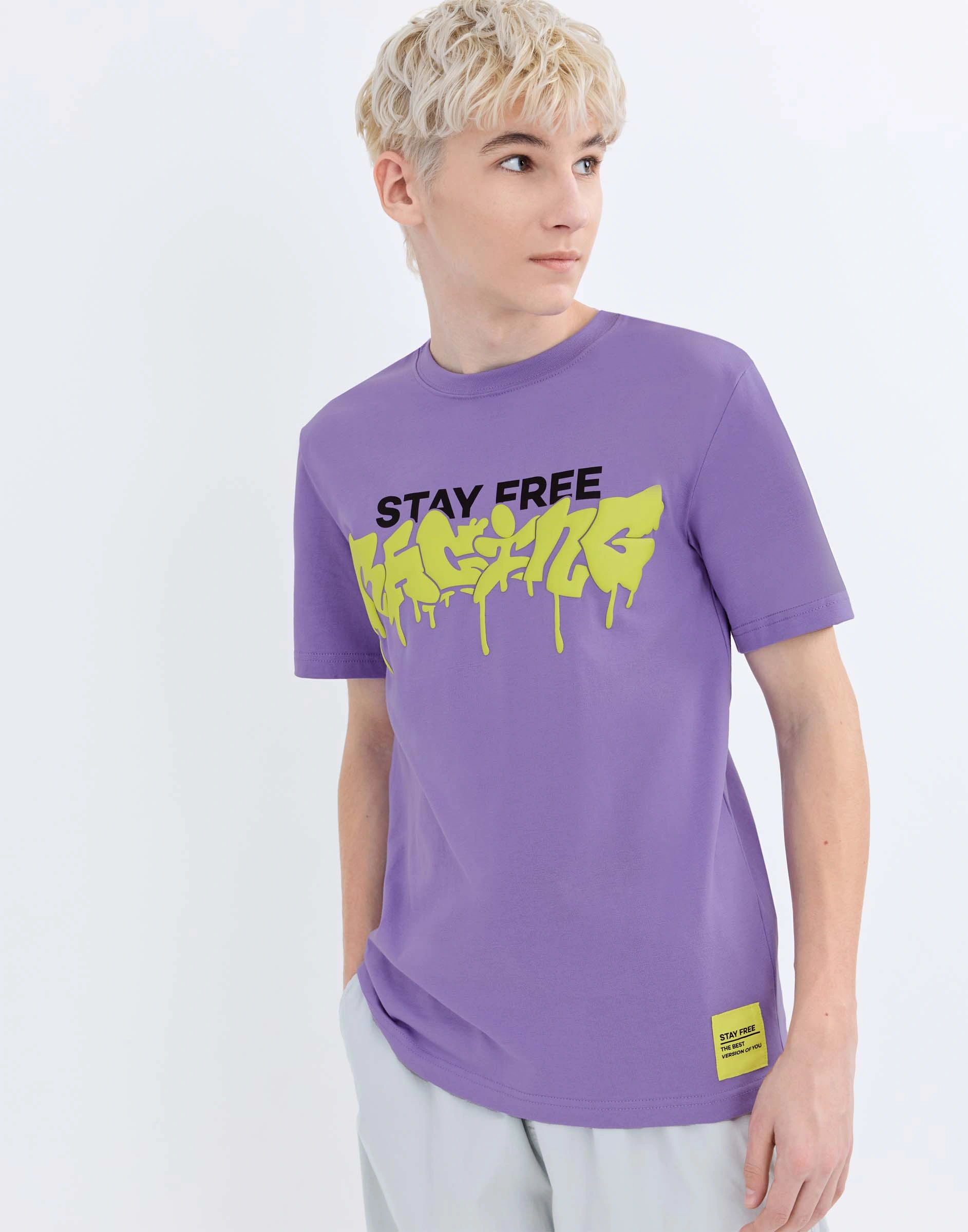 Фиолетовая футболка с объёмным принтом и нашивкой Bkt016560-2