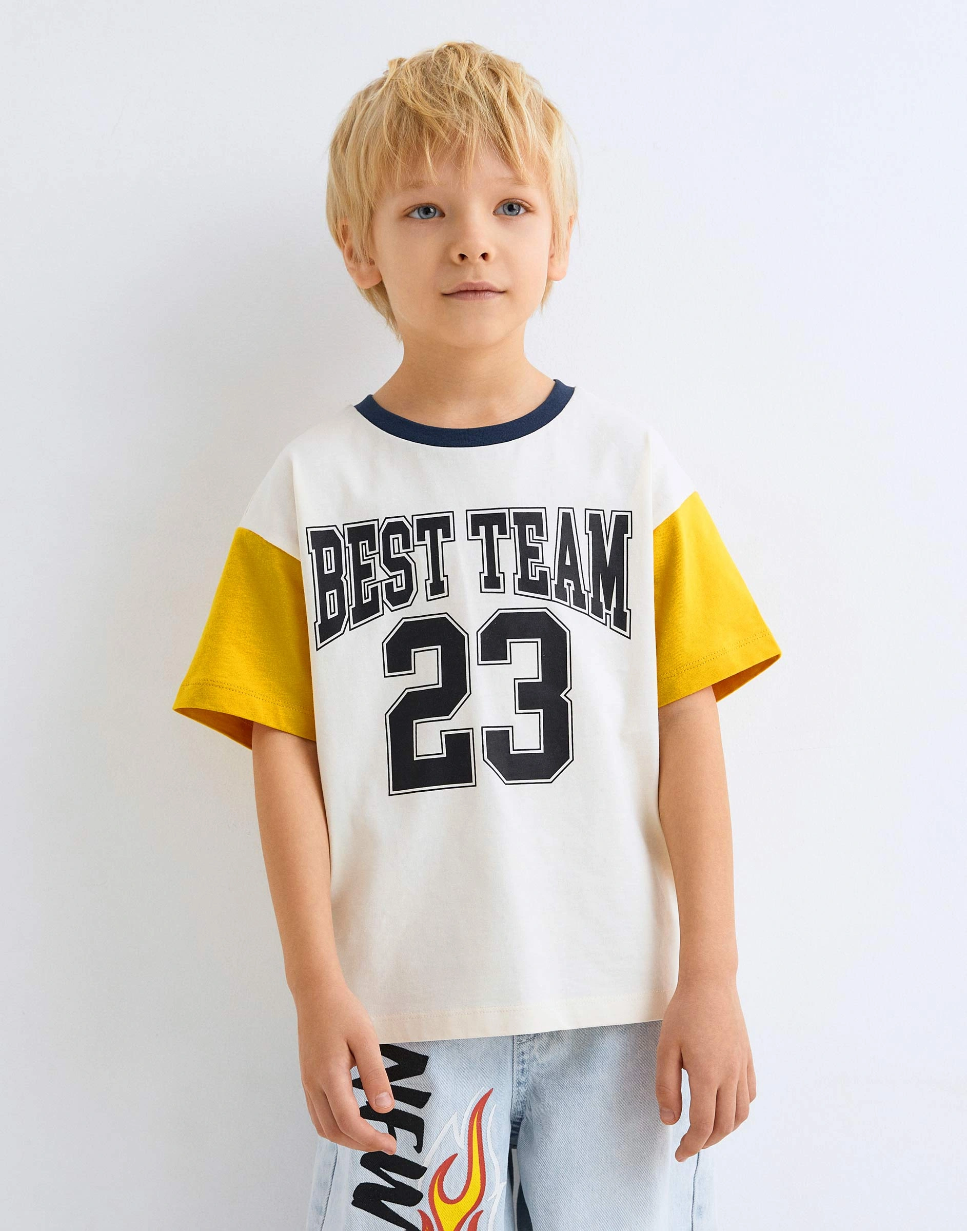 Футболка oversize колор-блок с принтом для мальчика Bkt016256-1