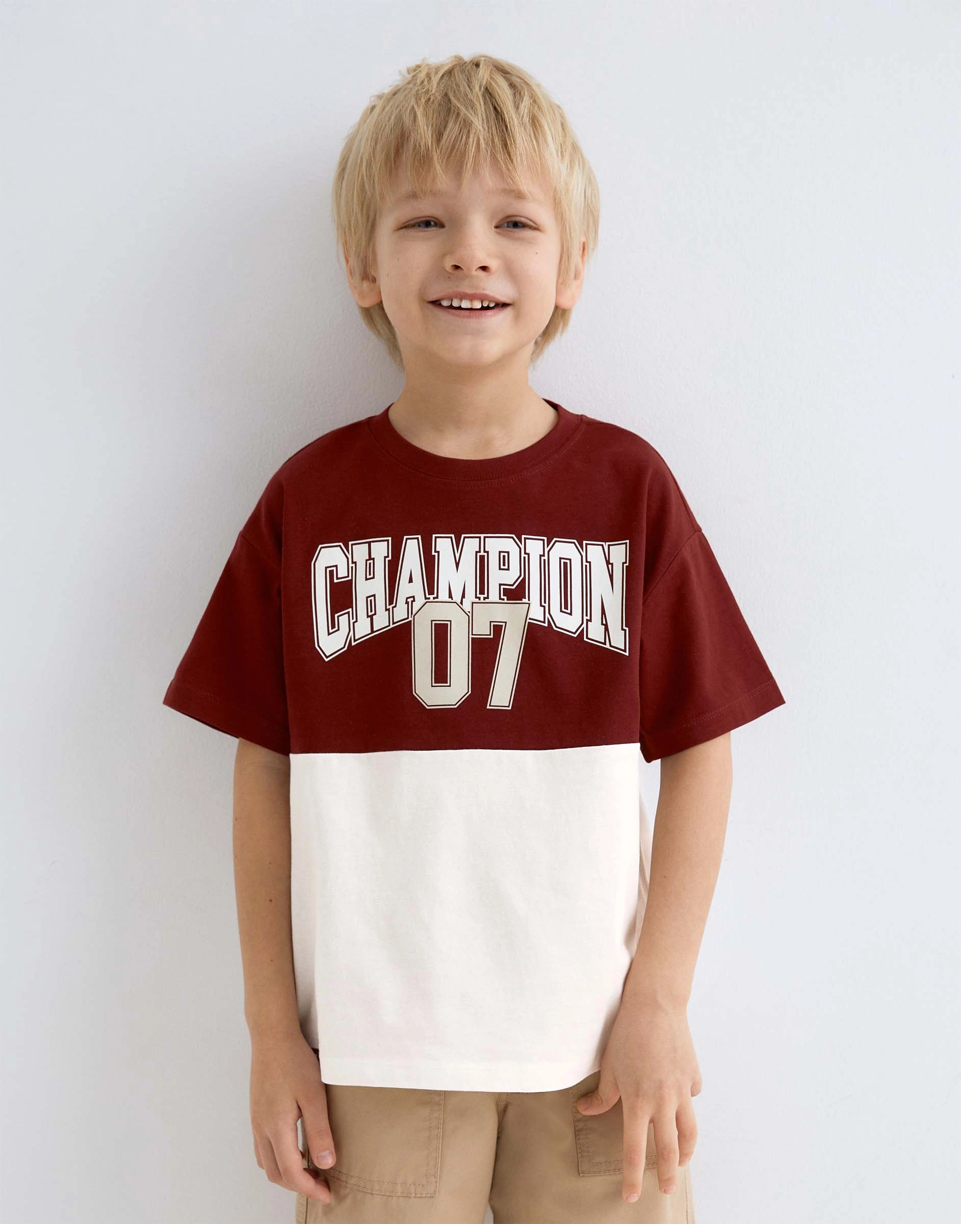 Футболка oversize колор-блок с принтом для мальчика Bkt016623-2