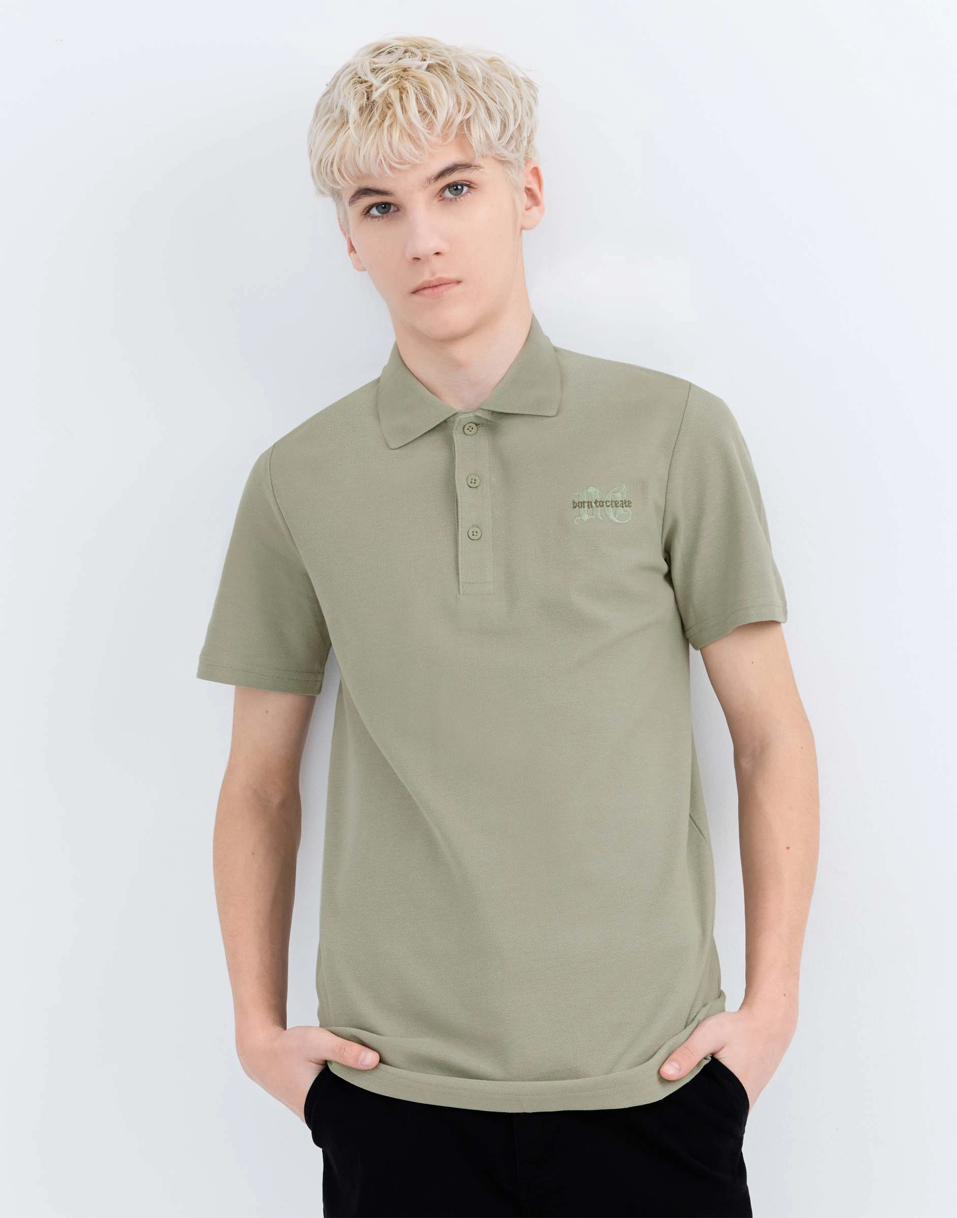 Хаки свободная футболка-поло с вышивкой Bkt016175-1