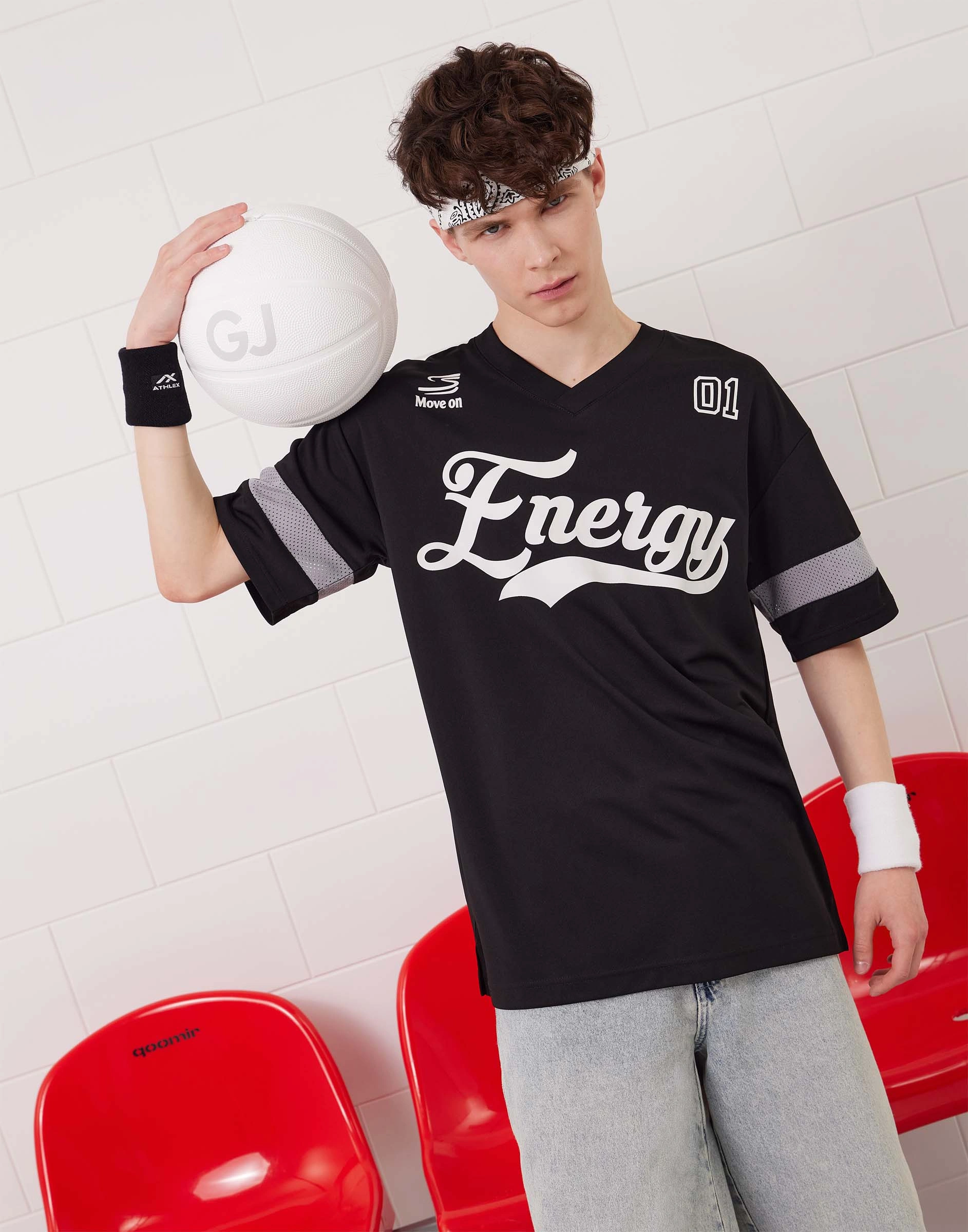 Чёрная футболка oversize со вставками из сетки и принтом Bkt015961-2