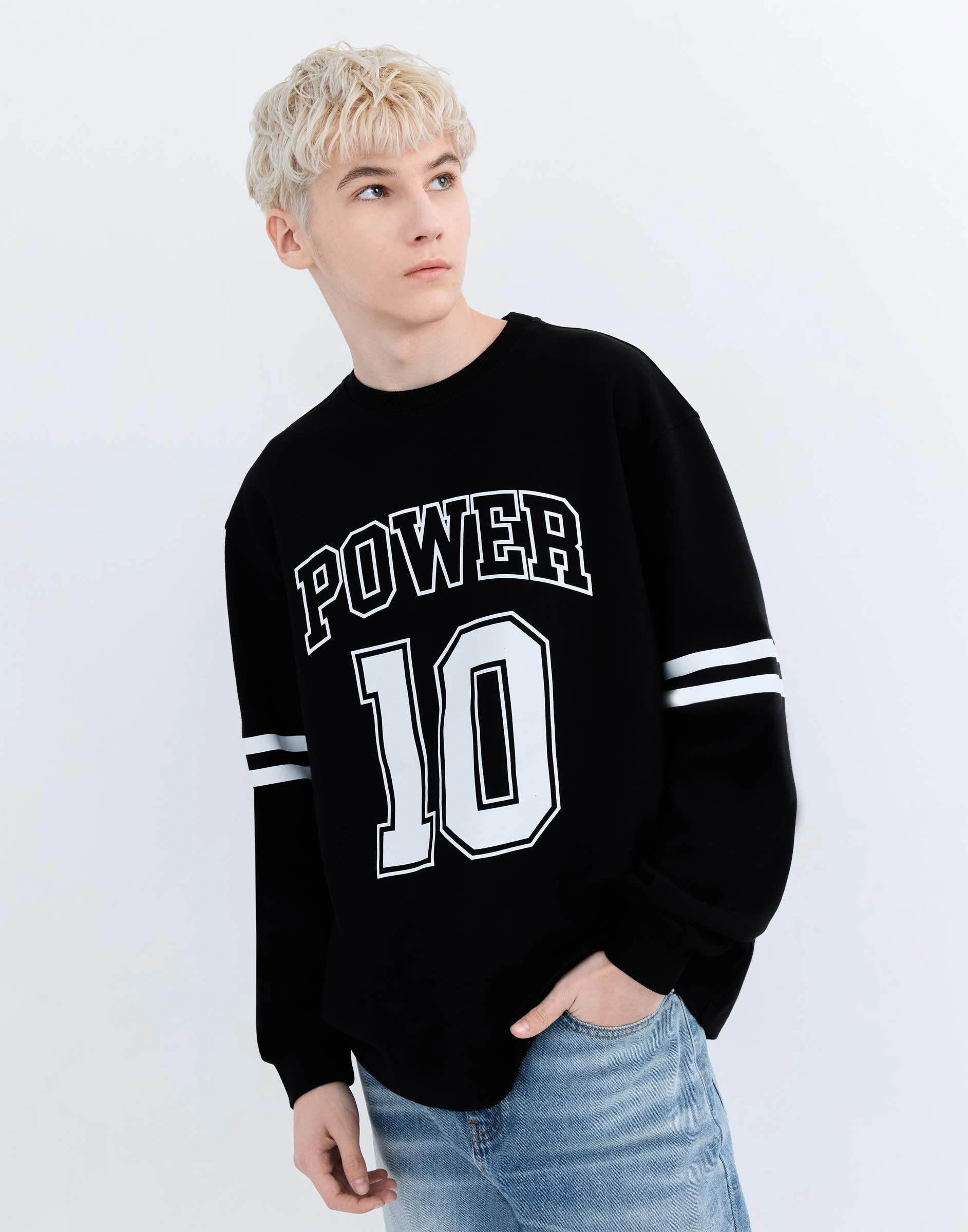 Чёрный свитшот из скубы с принтом Bac013987-1