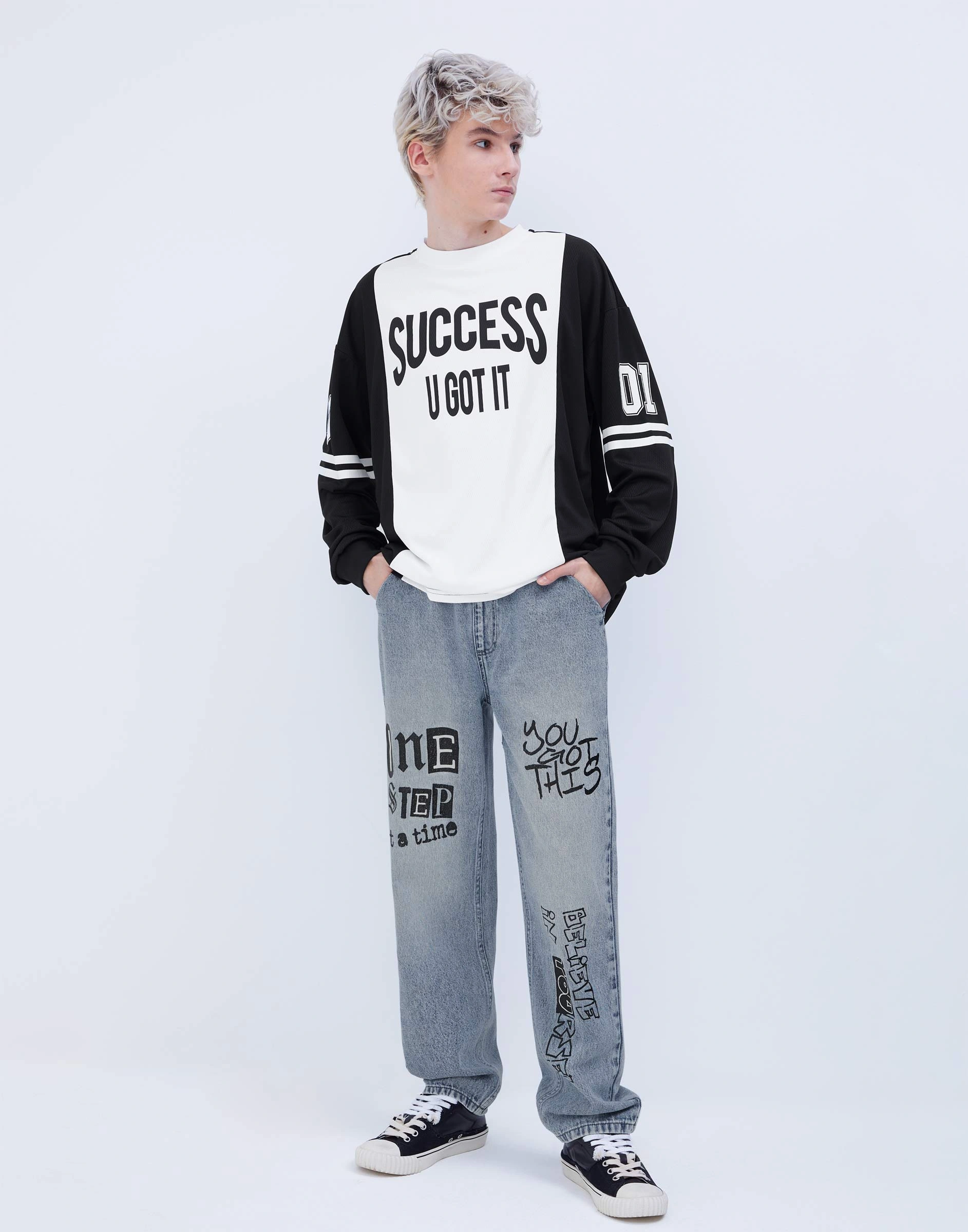 Джинсы Loose на резинке с принтом Bjn016980-1
