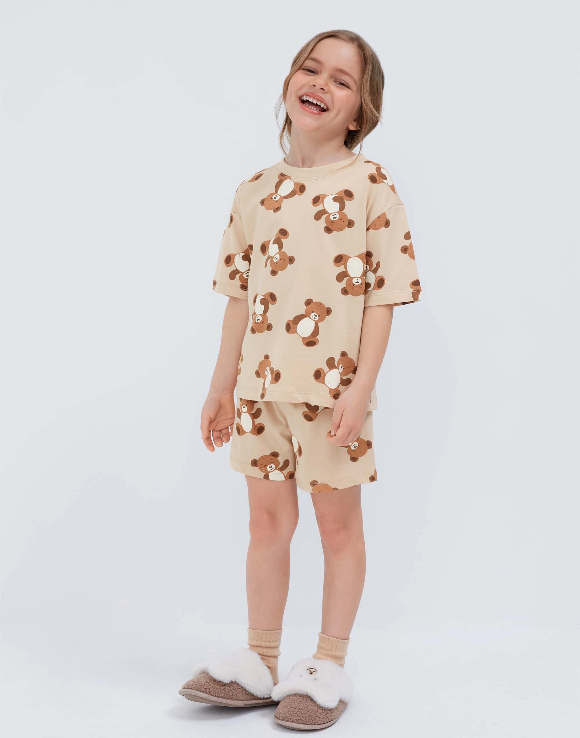 Бежевая пижама с медвежатами для девочки Gsl002162-1