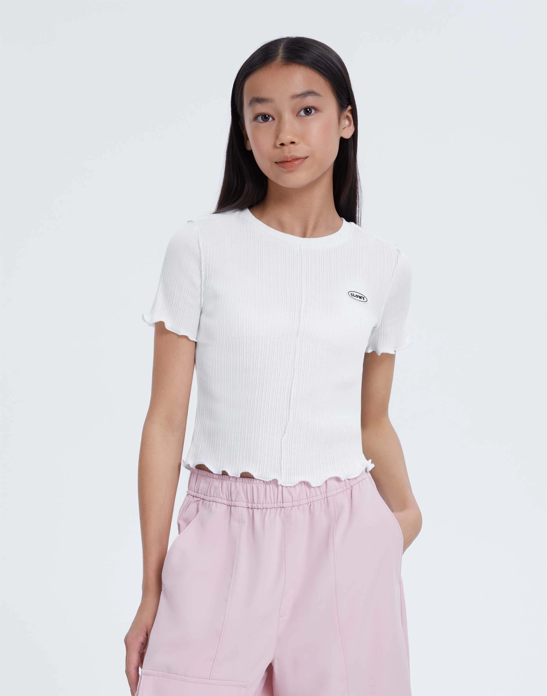 Белая облегающая футболка с волнистым краем и вышивкой Gkt026270-2