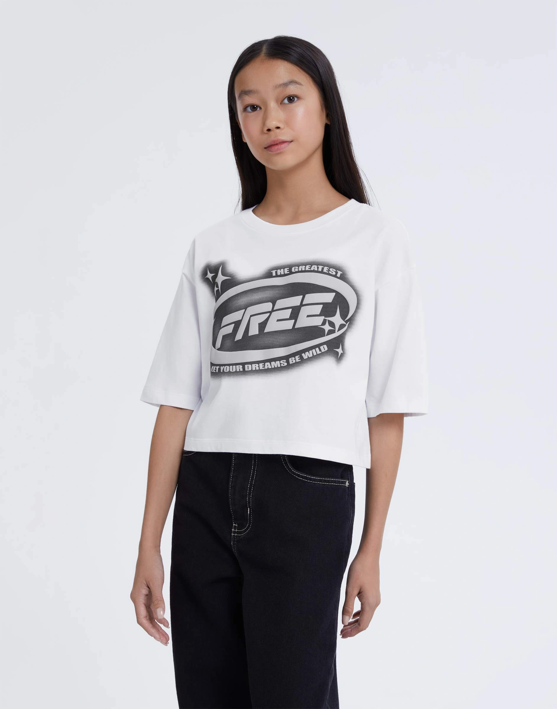 Белая укороченная футболка с принтом Gkt025640-2