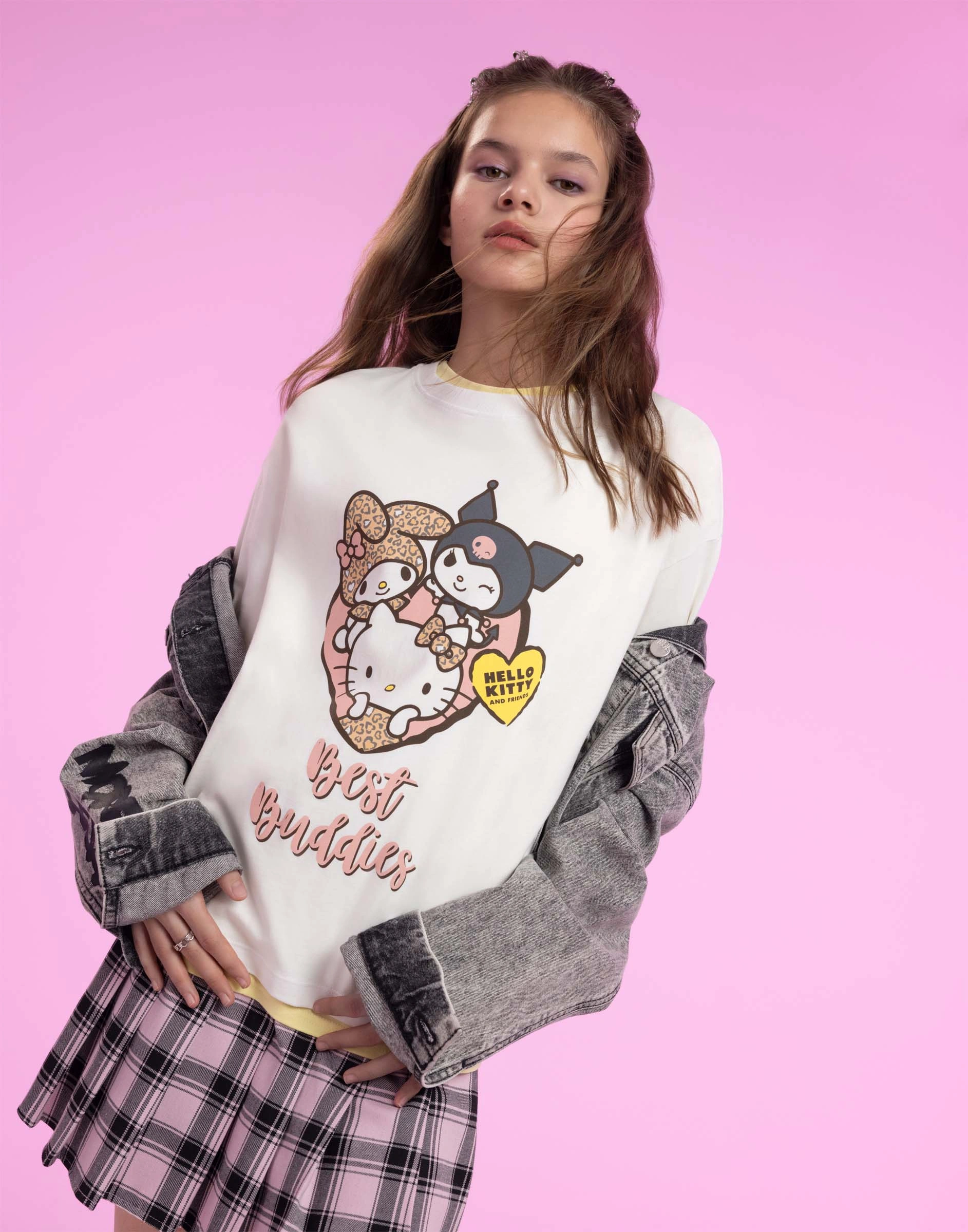 Белая футболка oversize с принтом Hello Kitty Gkt027254-1