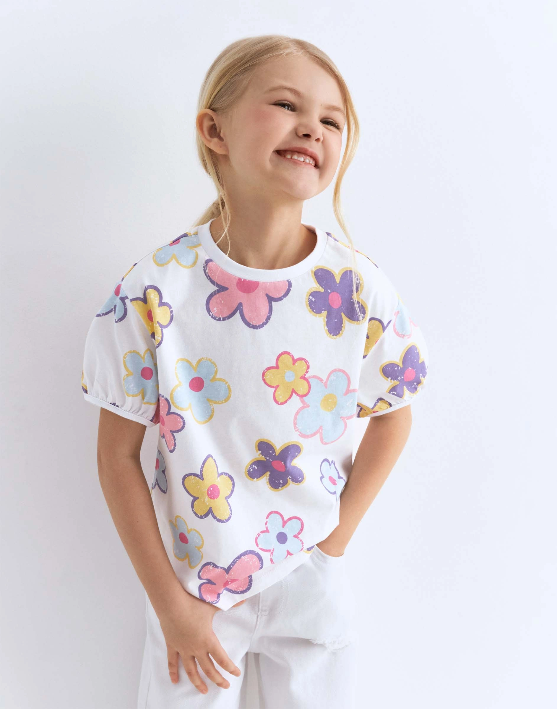 Белая футболка oversize с принтом для девочки Gkt026070-1