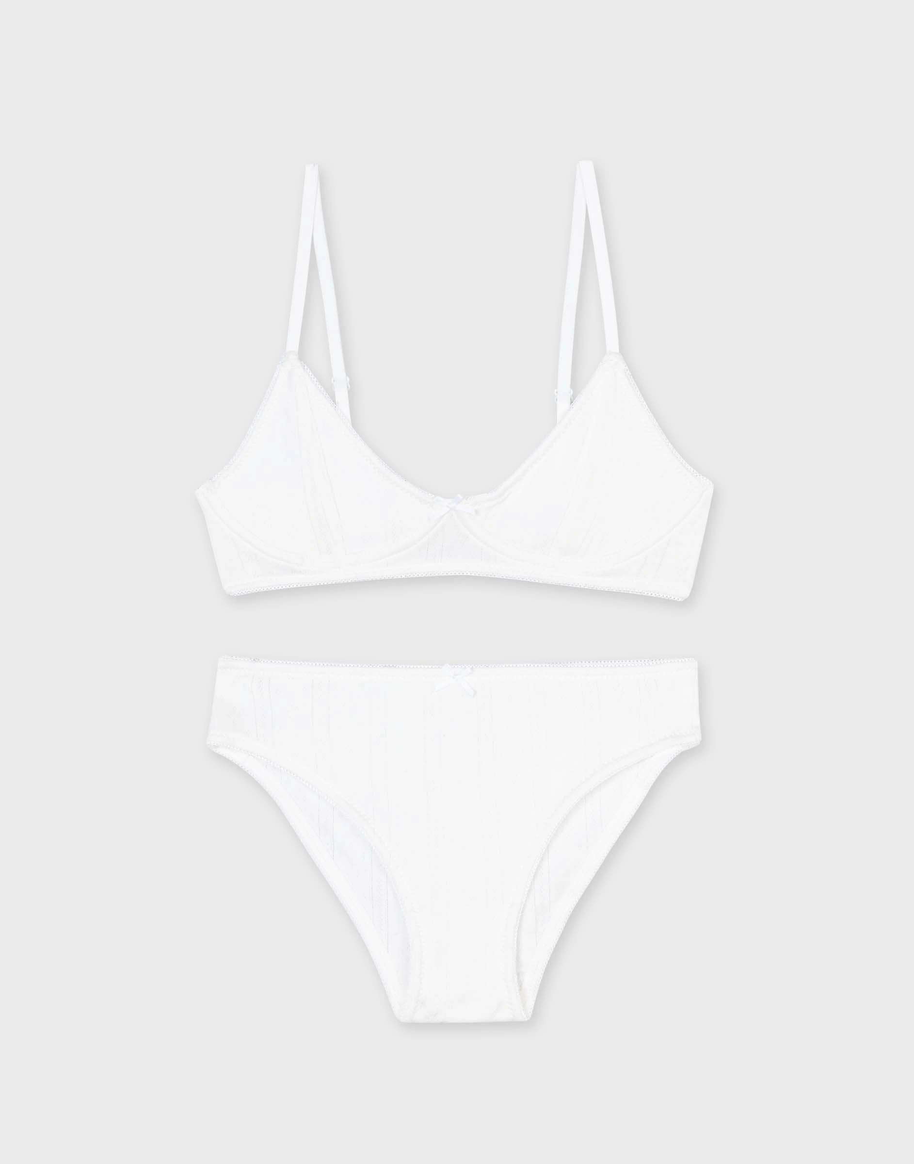 Белый комплект белья из трикотажа пуантель в рубчик Gse001535-1