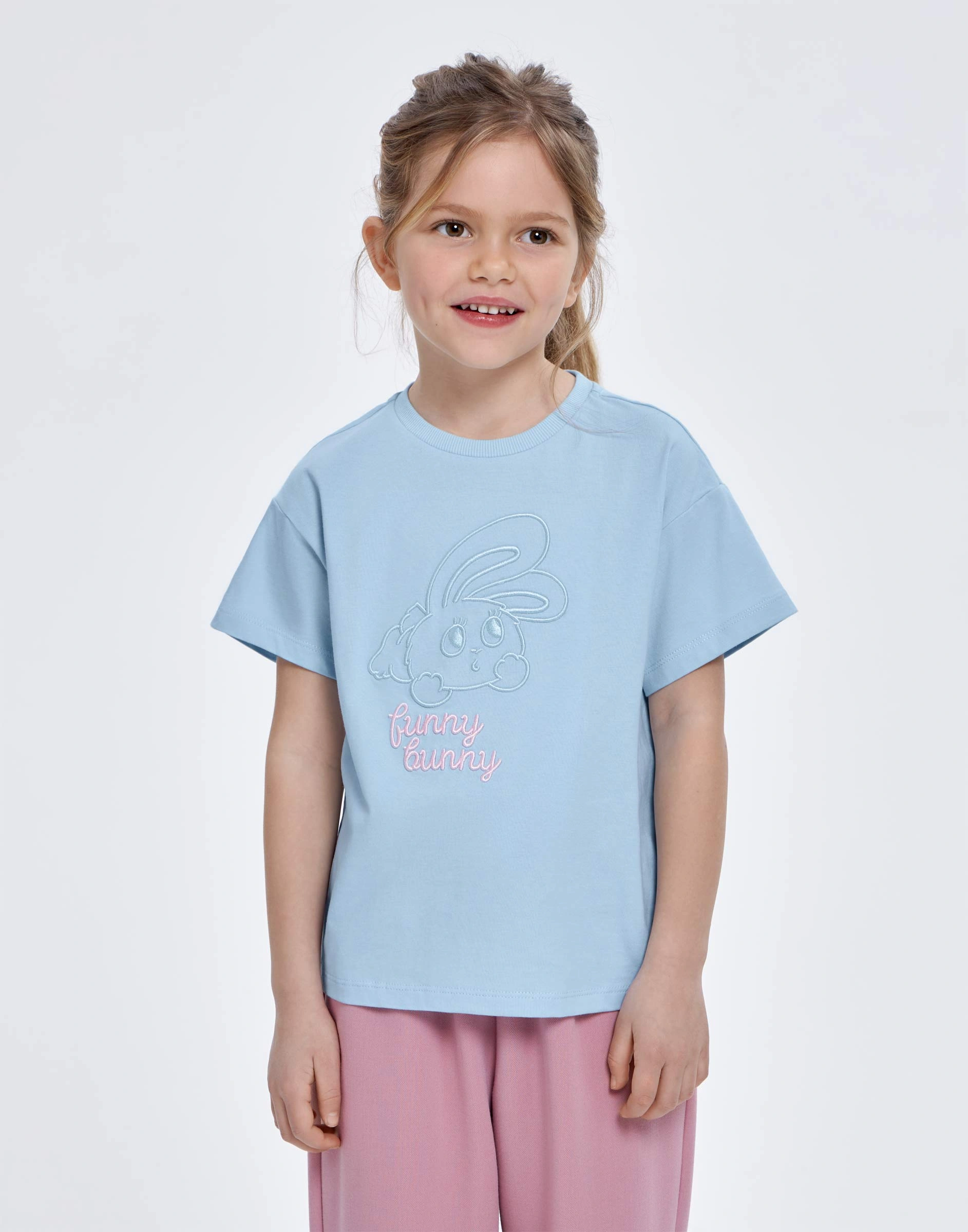 Голубая футболка oversize с вышивкой для девочки Gkt026520-3