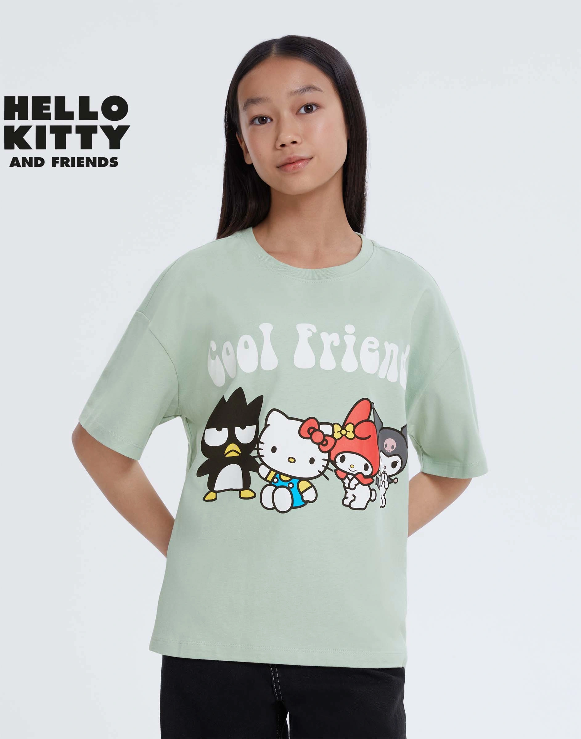 Зелёная футболка oversize с принтом Hello Kitty Gkt027252-1
