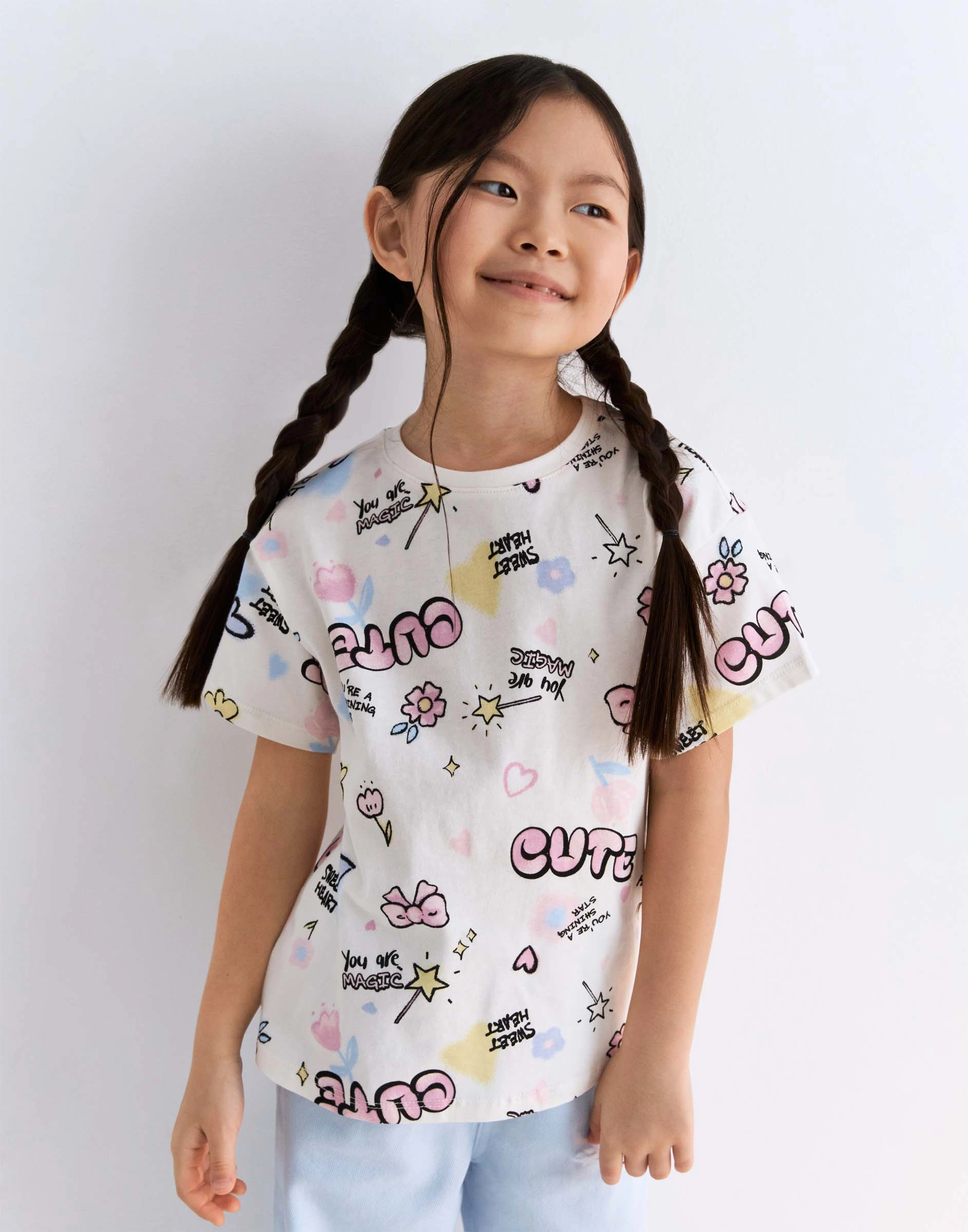 Молочная футболка oversize с принтом для девочки Gkt026207-1