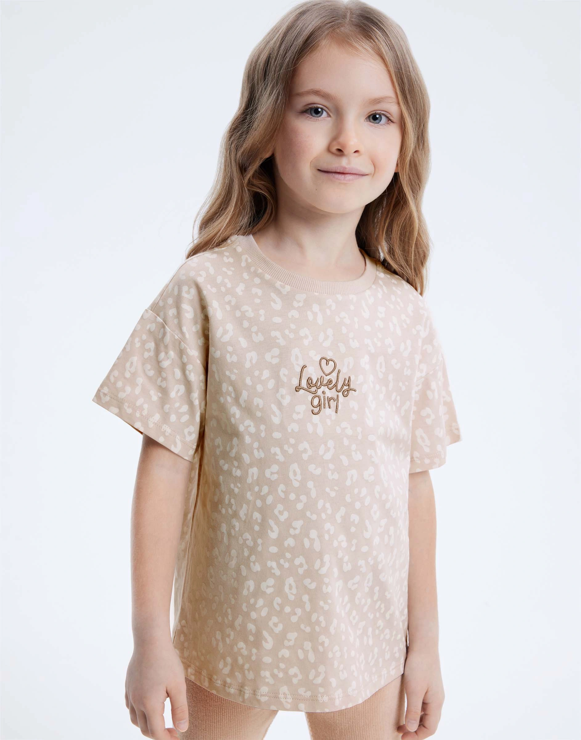 Молочная футболка oversize с принтом и вышивкой для девочки Gkt026329-2