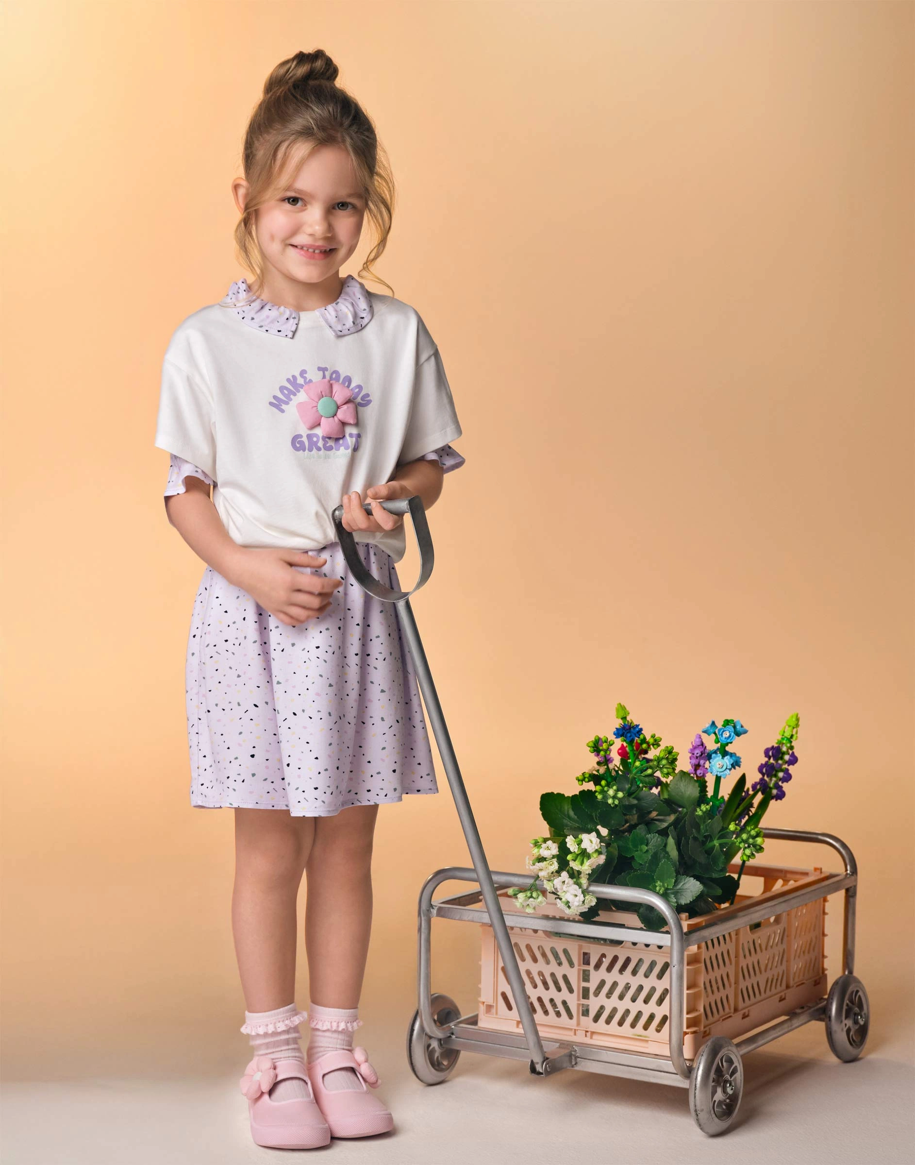 Молочная футболка oversize с принтом и игрушкой для девочки Gkt026247-1