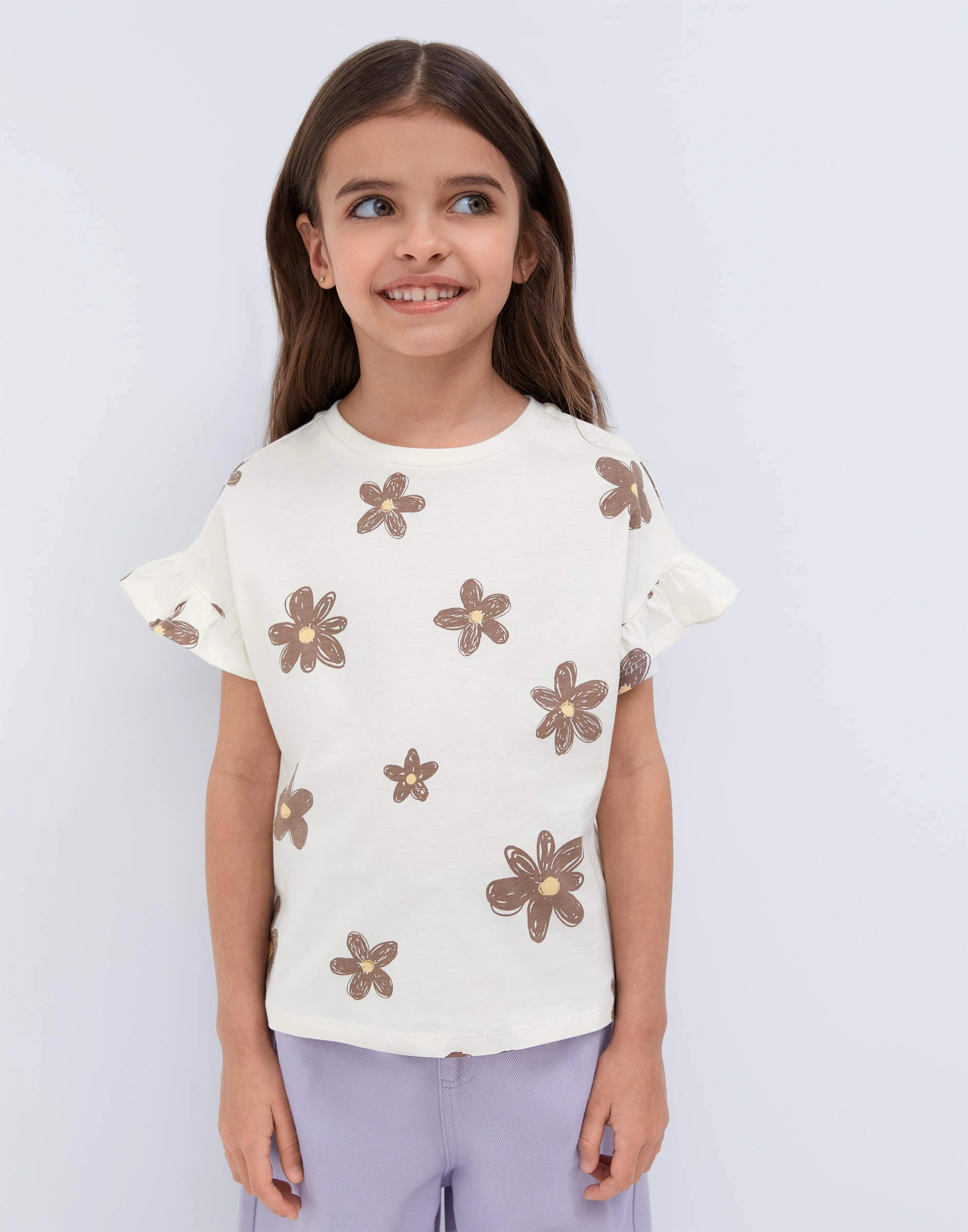 Молочная футболка oversize с тотальным принтом для девочки Gkt026322-2