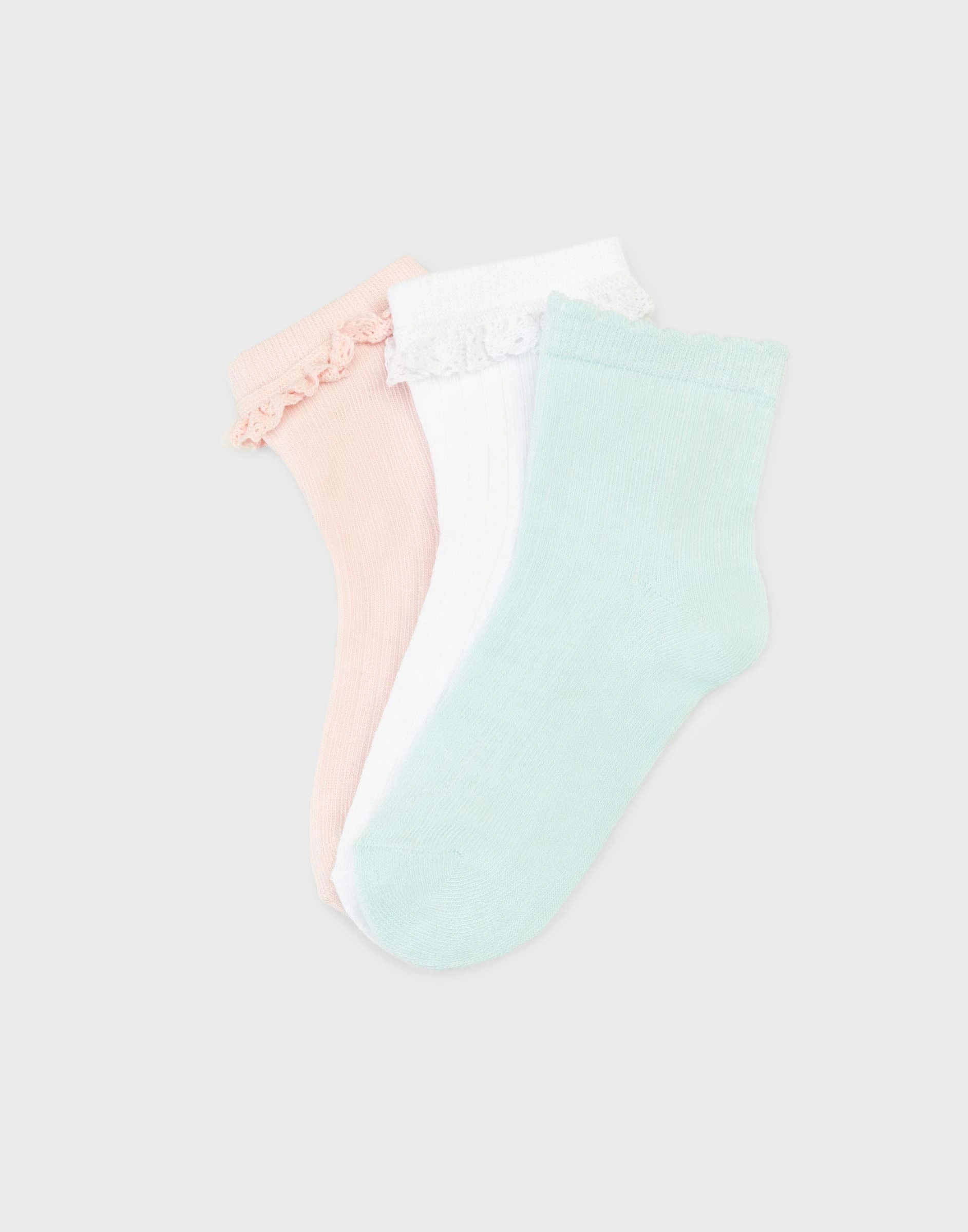 Носки в рубчик с кружевом для девочки 3 пары Ghs010347-2