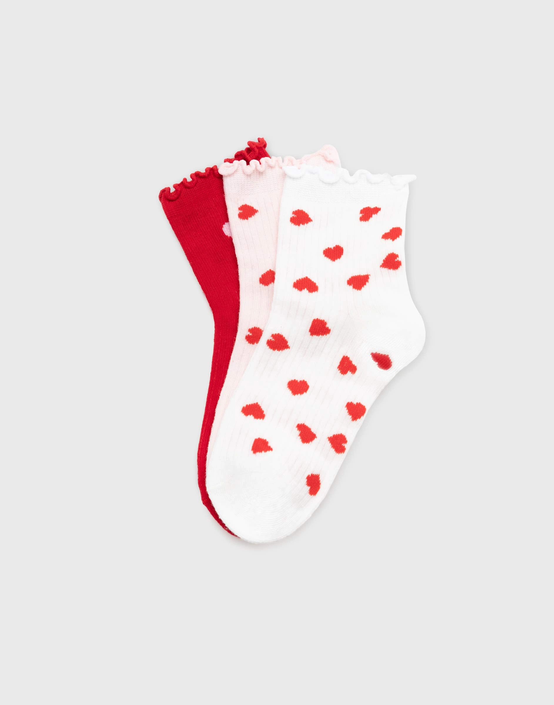 Носки в рубчик с рюшами и принтом для девочки 3 пары Ghs010348-1