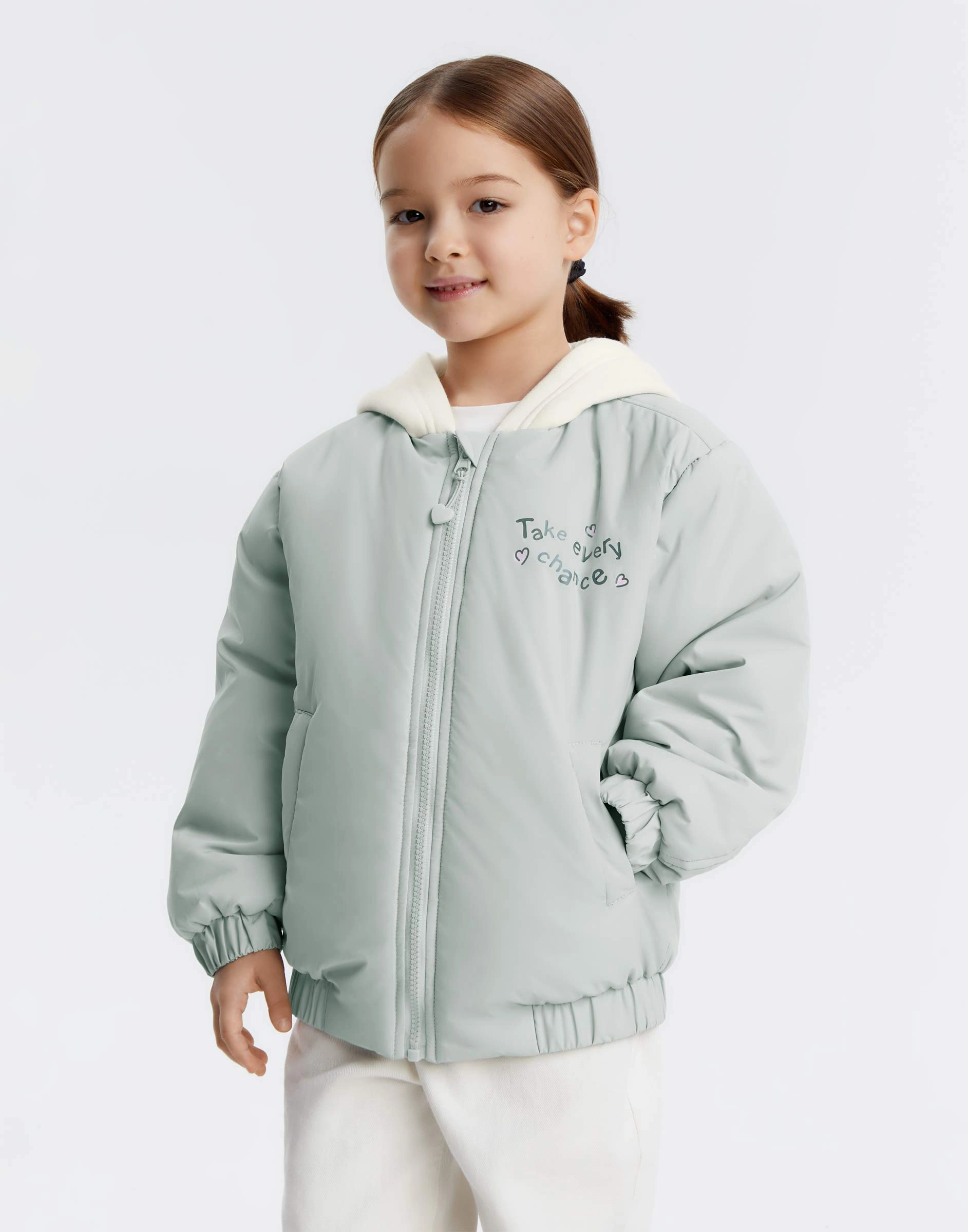 Оливковая куртка-бомбер oversize с капюшоном для девочки Gow004414-2