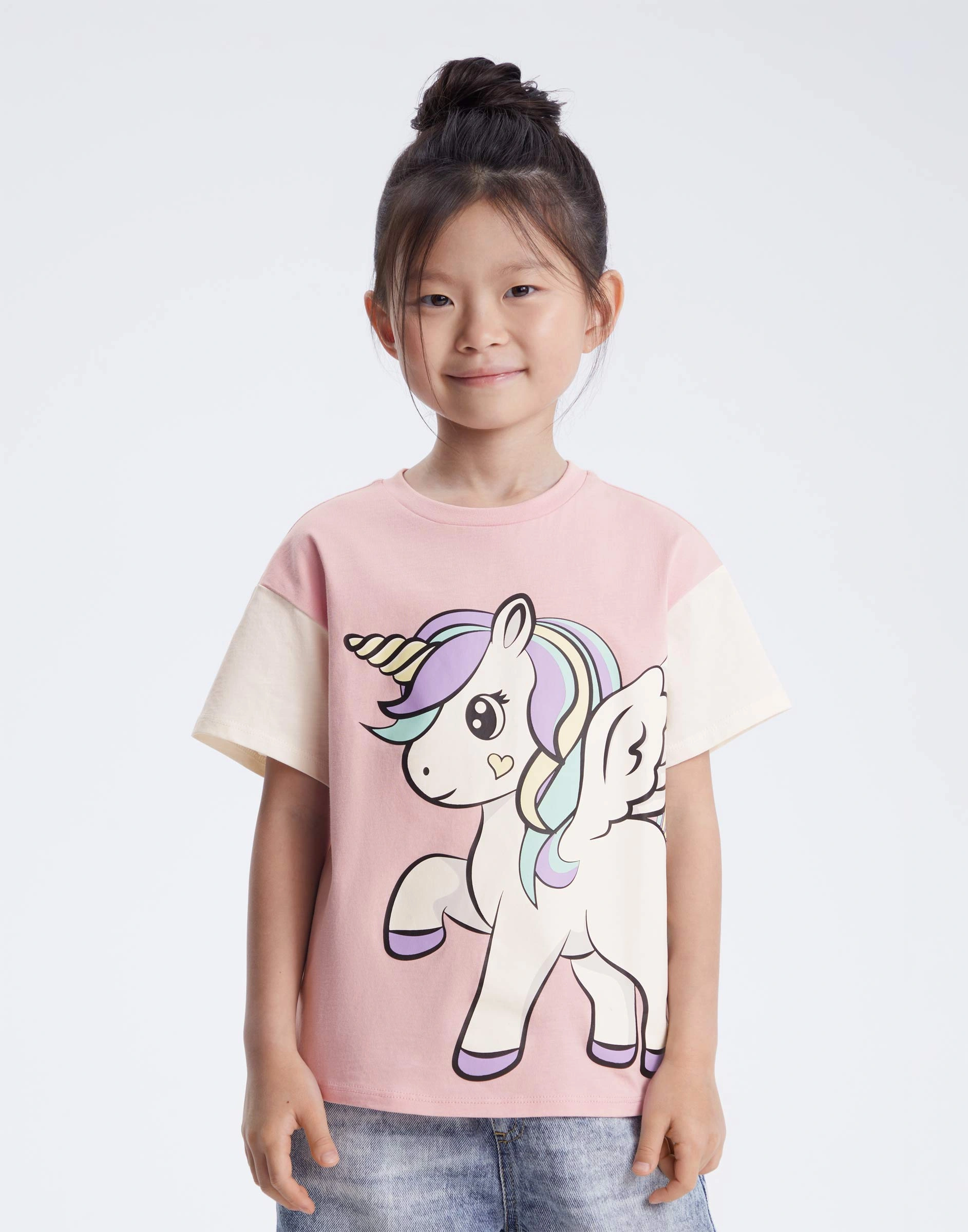 Розовая футболка oversize с принтом для девочки Gkt026417-3