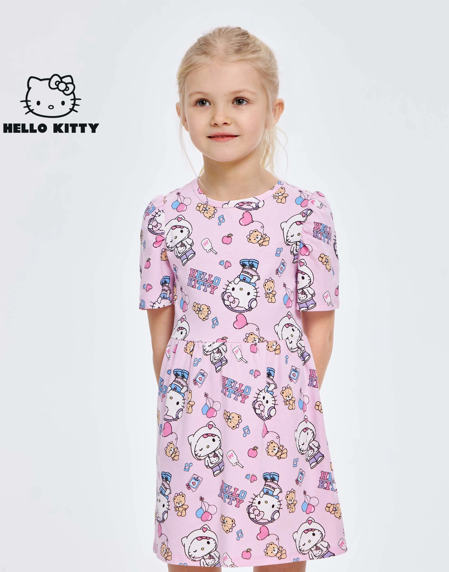Розовое платье с тотальным принтом Hello Kitty для девочки Gdr030005-1