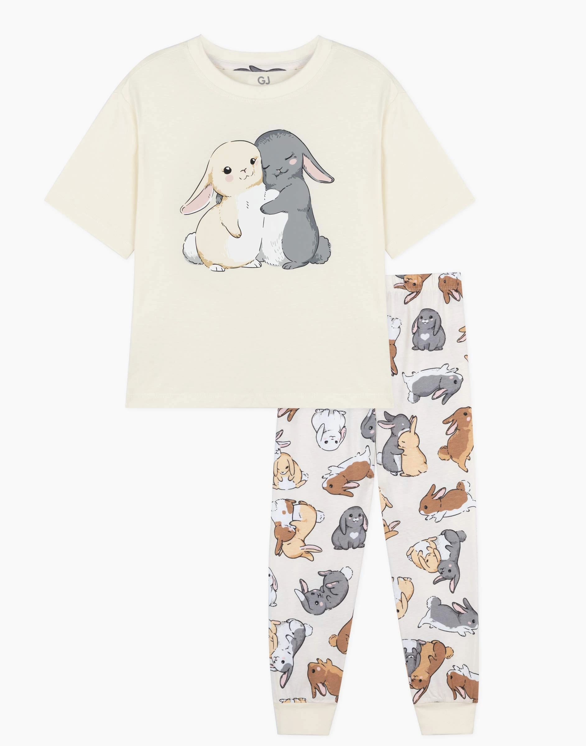 Светло-бежевая пижама с кроликами для девочки Gsl002581-1