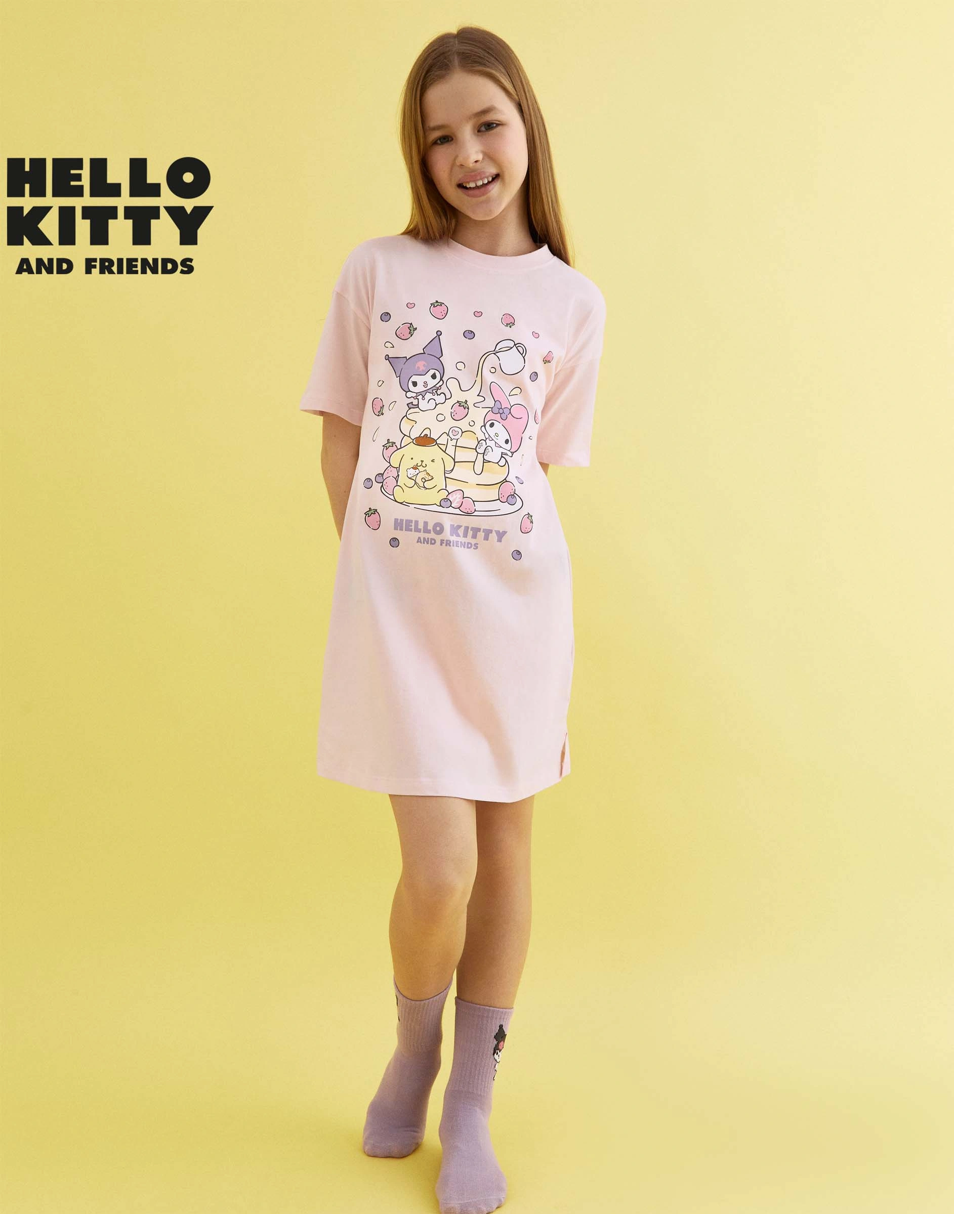 Светло-розовая ночная сорочка с принтом Hello Kitty Gsl002870-1