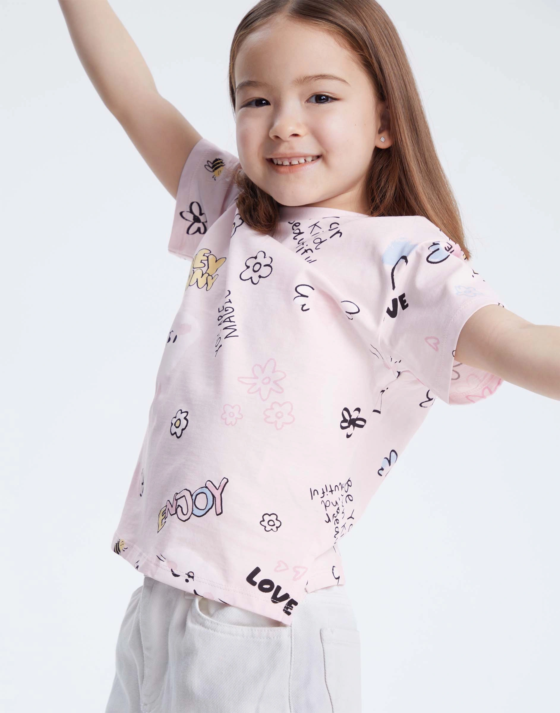 Светло-розовая футболка oversize с принтом для девочки Gkt026392-1