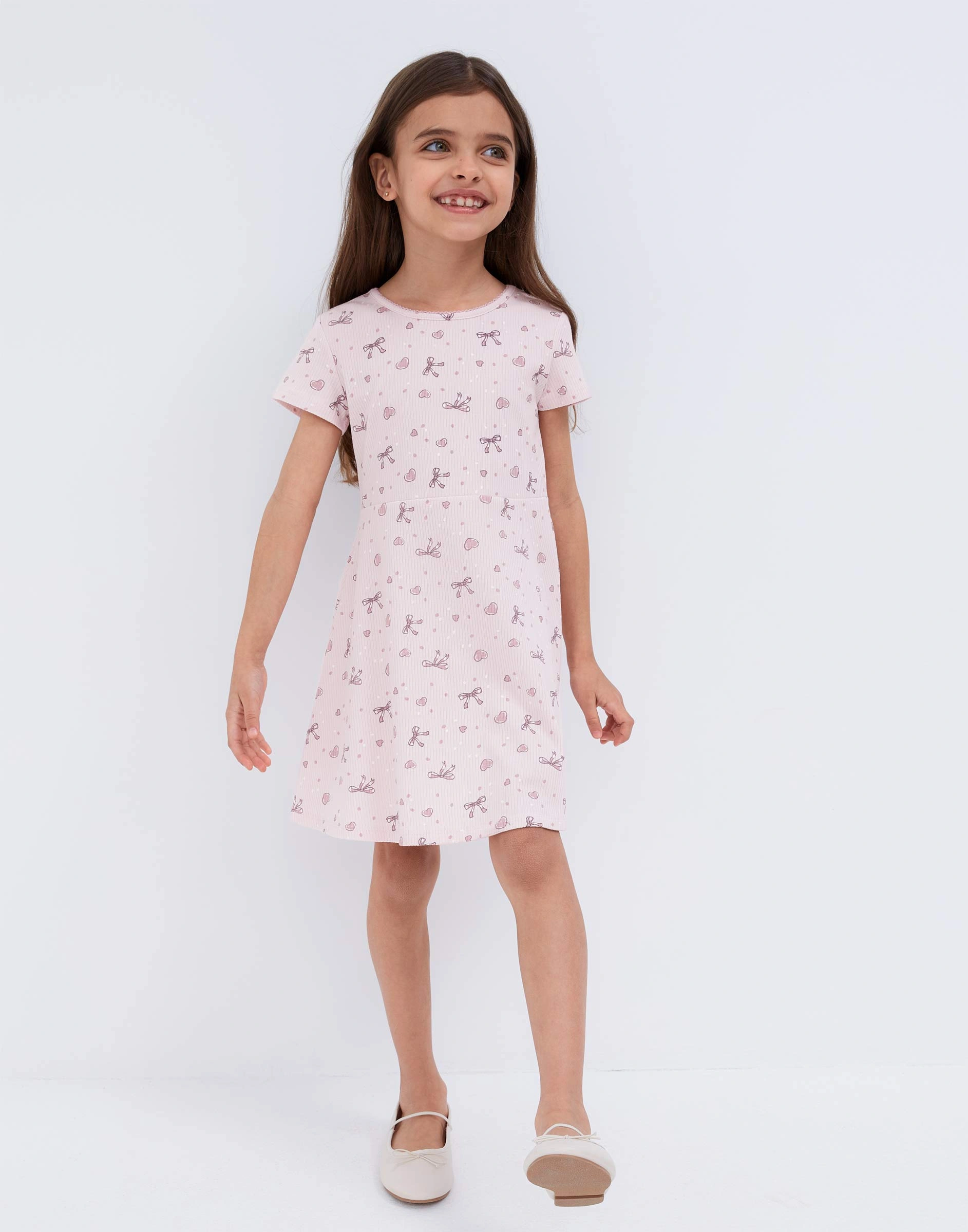 Светло-розовое платье с тотальным принтом для девочки Gdr030004-1