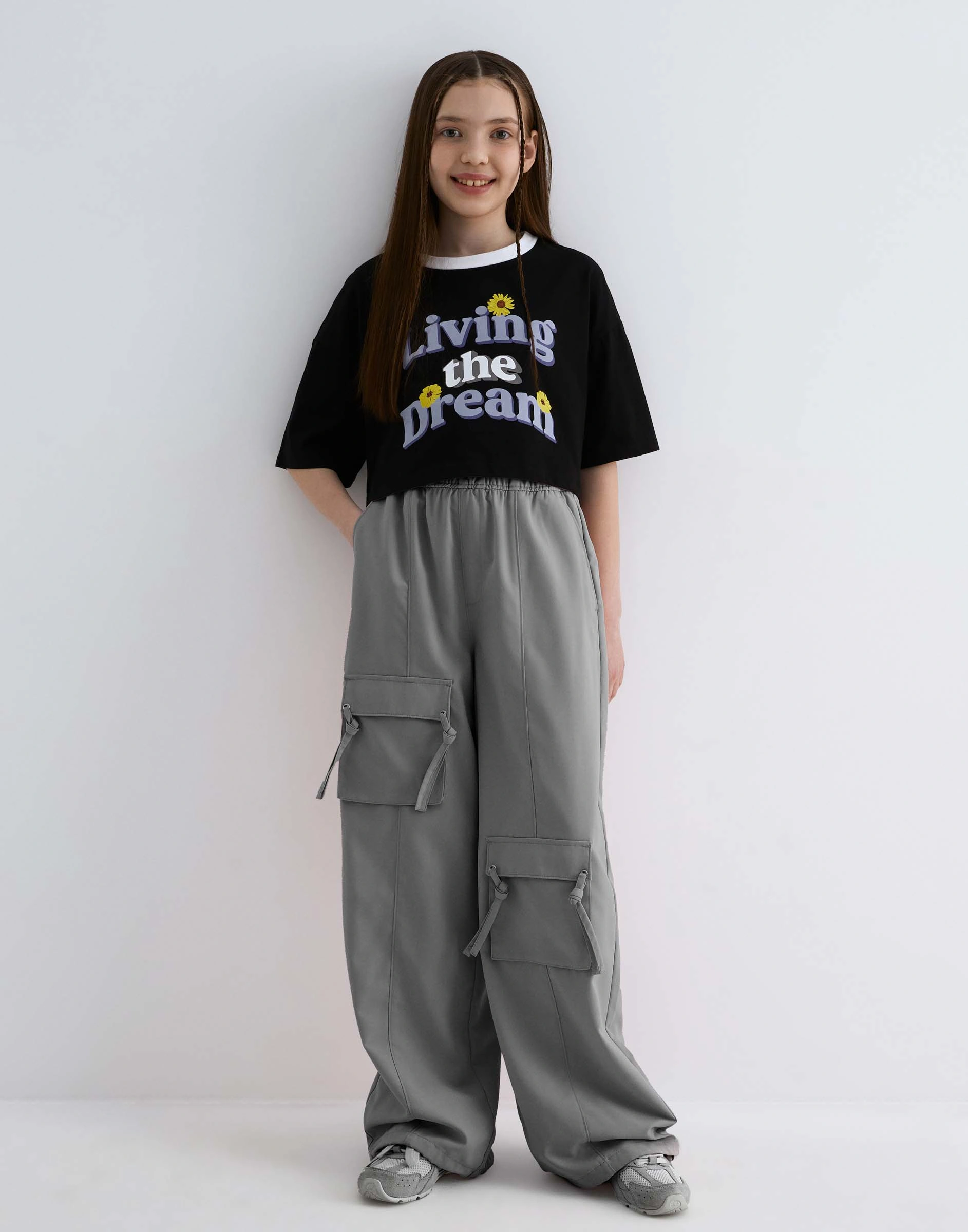 Серые брюки-трансформеры Wide leg с карго-карманами Gpt010373-2