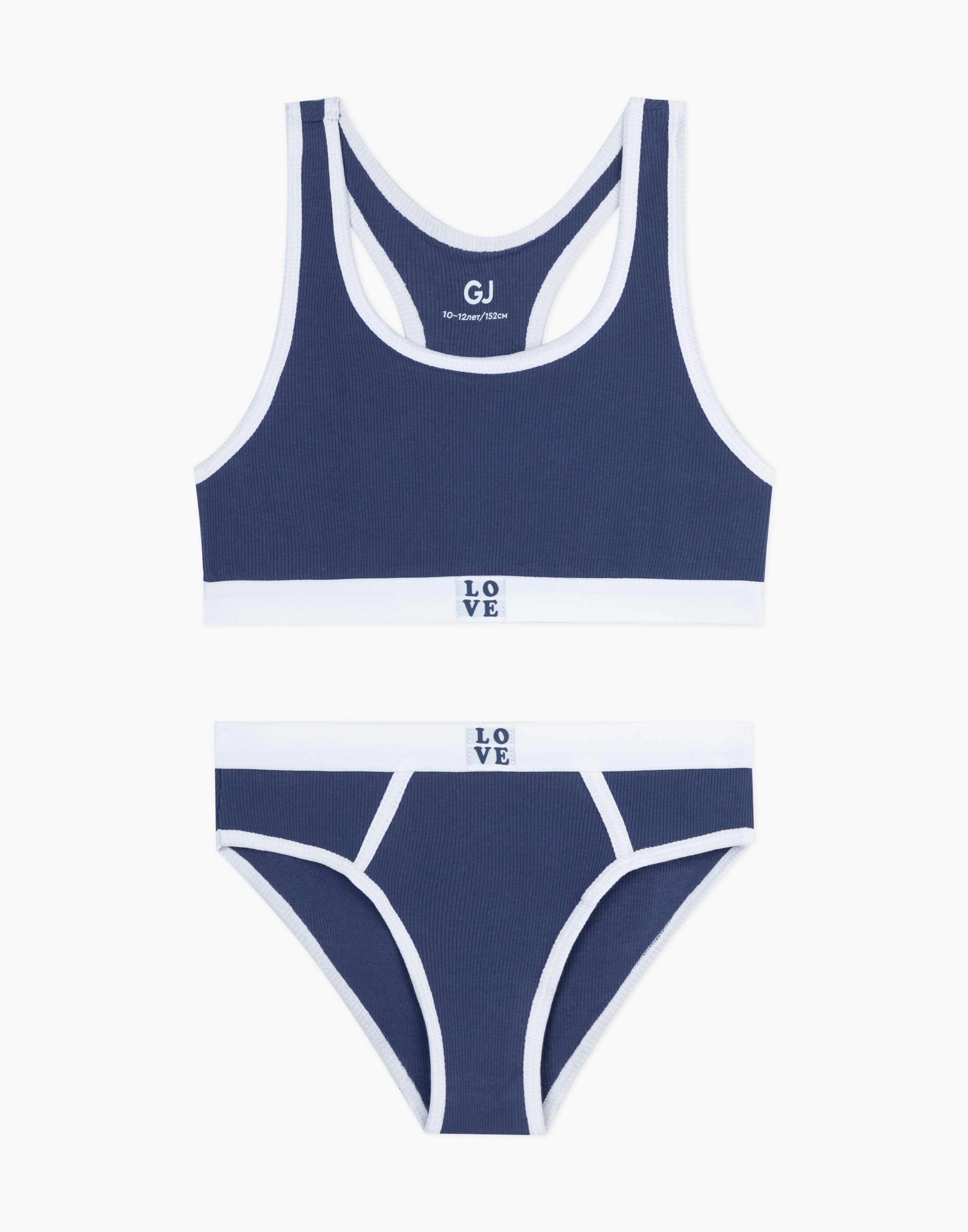 Темно-синий комплект белья в рубчик с патчем Gse001527-3