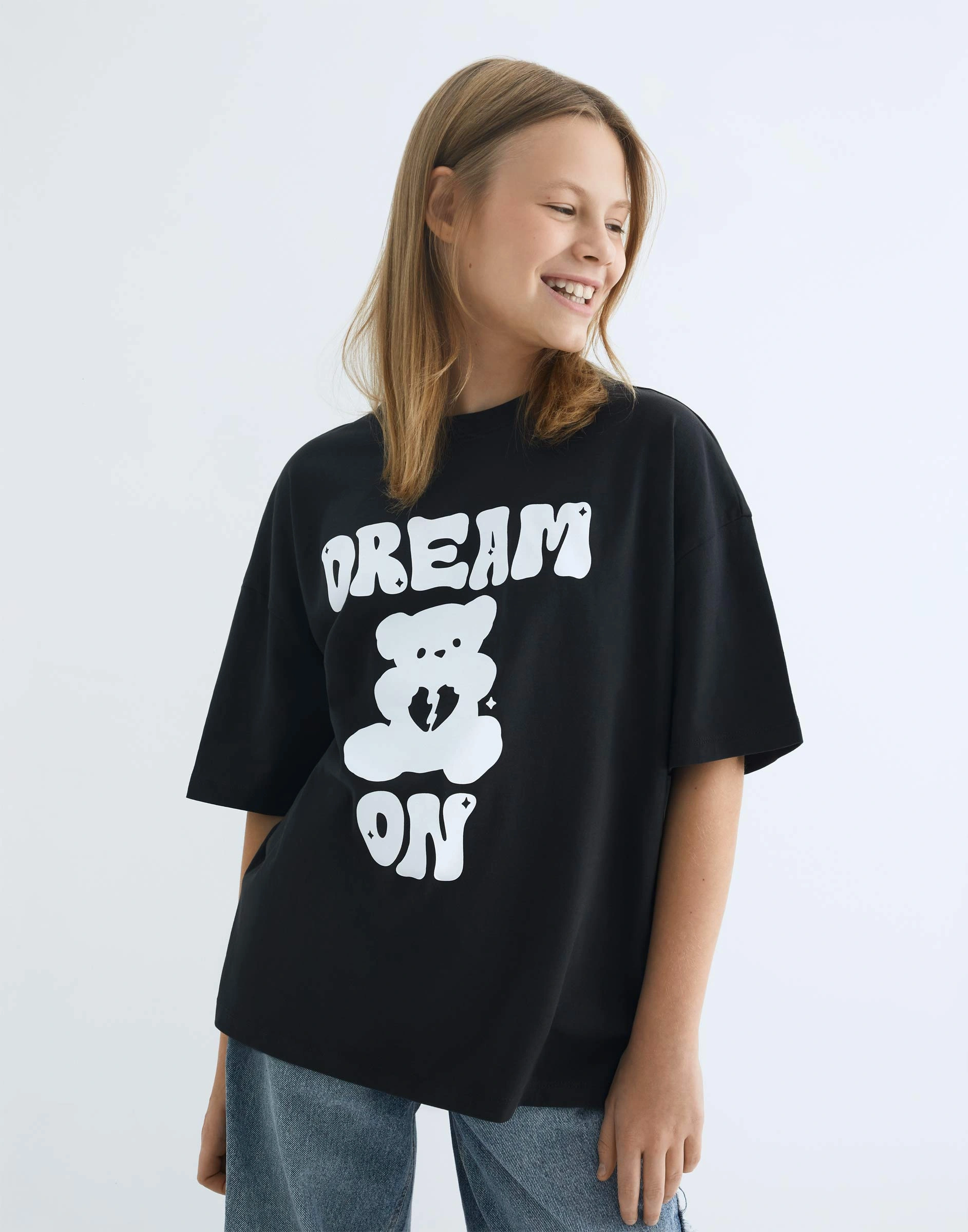 Тёмно-серая свободная футболка с мишкой Gkt028193-1