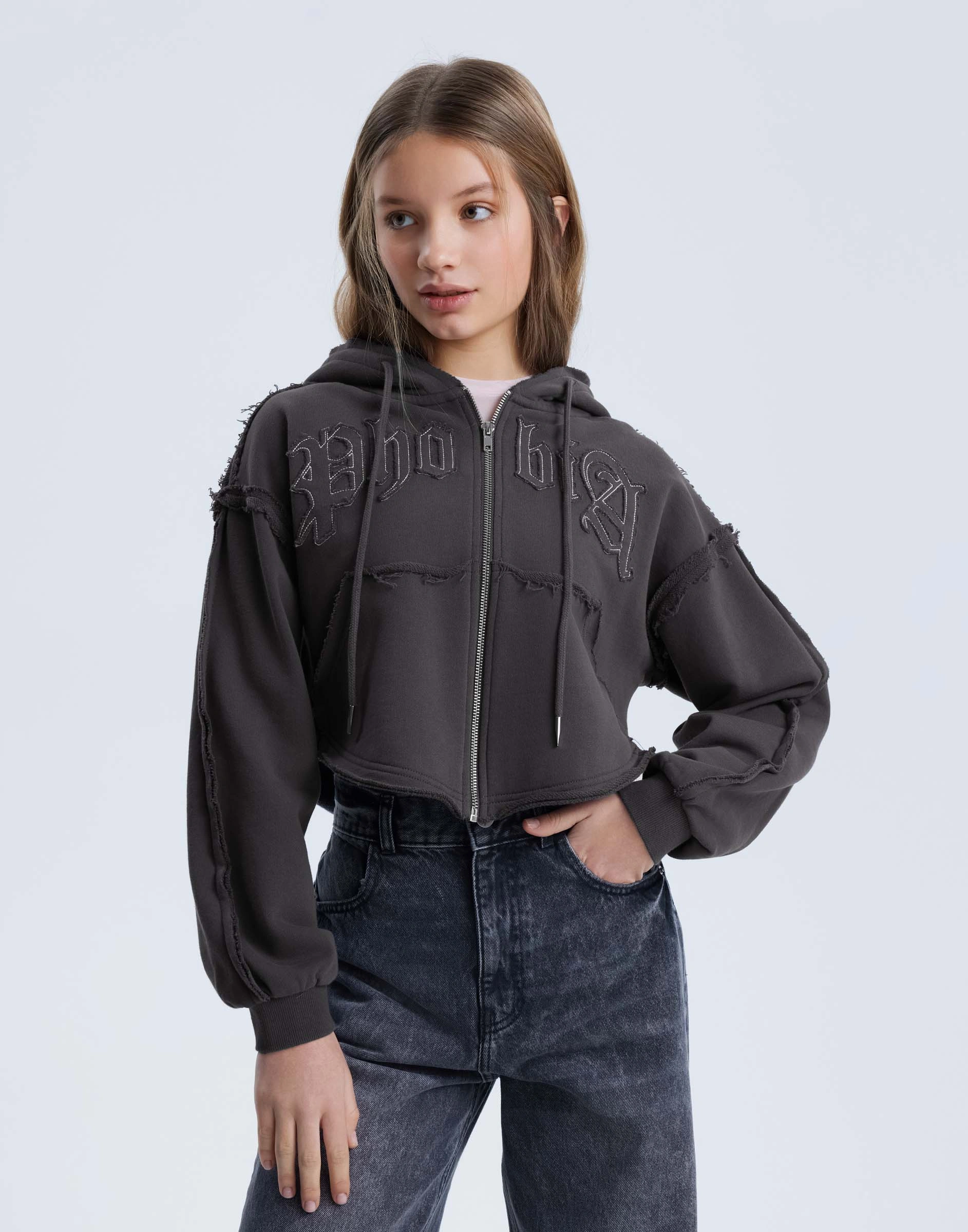 Тёмно-серая укороченная толстовка с аппликацией Gac023928-2