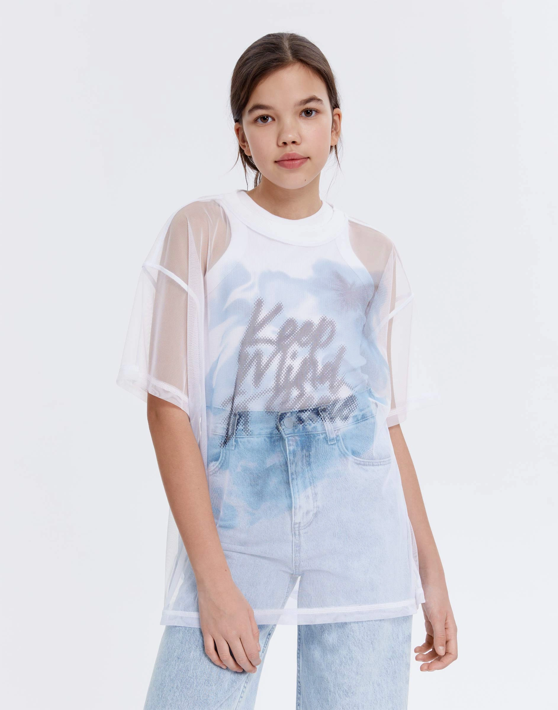 Белая футболка superoversize из сетки с принтом Gkt024649-2