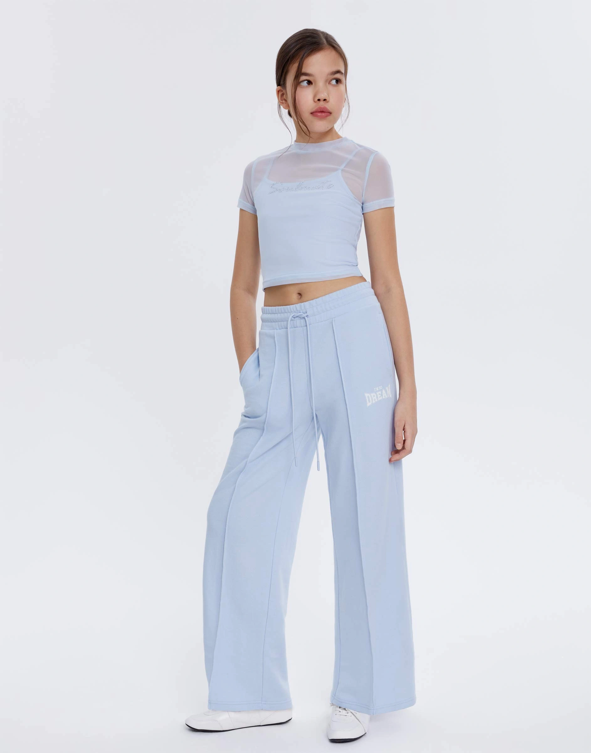 Голубые спортивные брюки Wide leg Gac024543-1