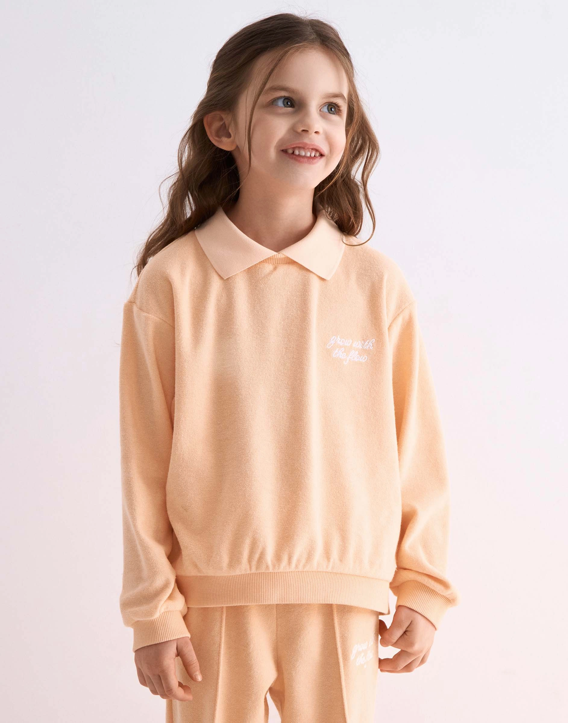 Оранжевый свитшот с отложным воротником и вышивкой для девочки Gac024457-1