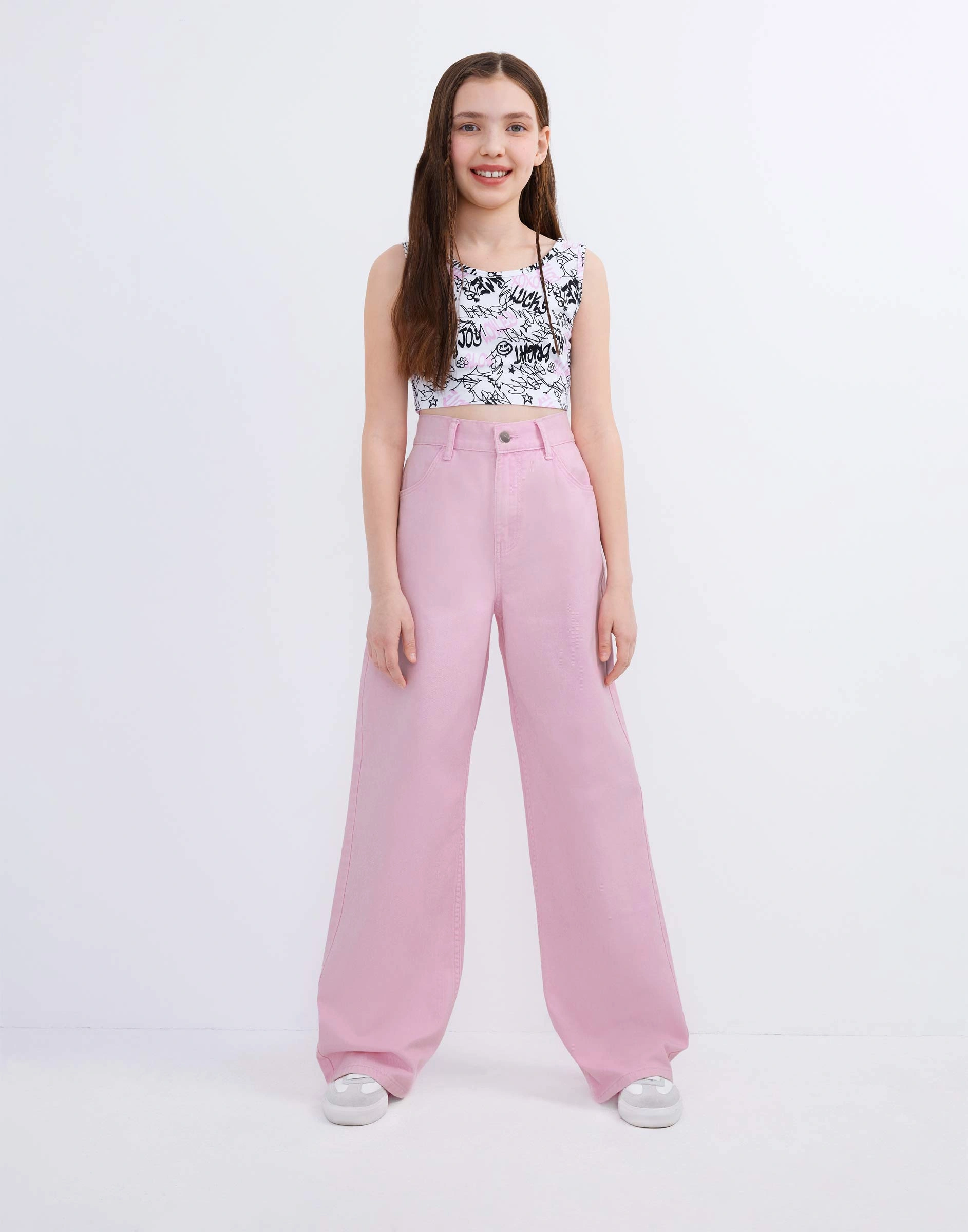 Розовые джинсы Long leg с эффектом варки Gjn035005-1